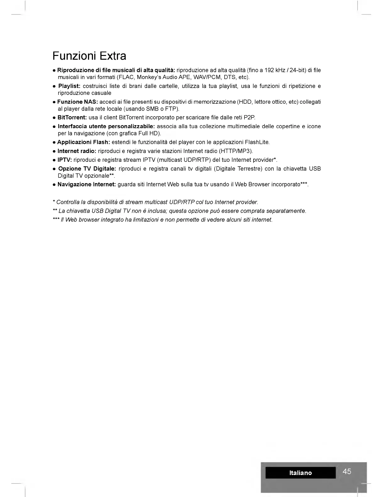 ** La chiavetta USB Digital TV non e inclusa; questa opzione pud essere com prata separatamente.