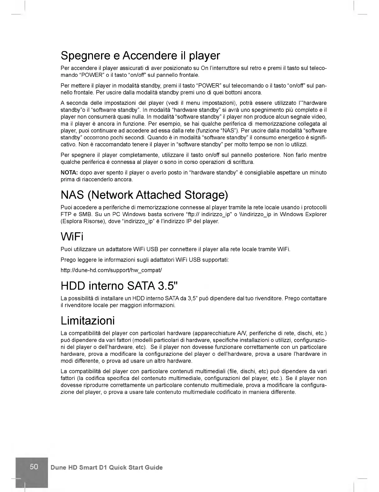 NOTA: dopo aver spento il player o averlo posto in “hardware standby” e consigliabile aspettare un minuto