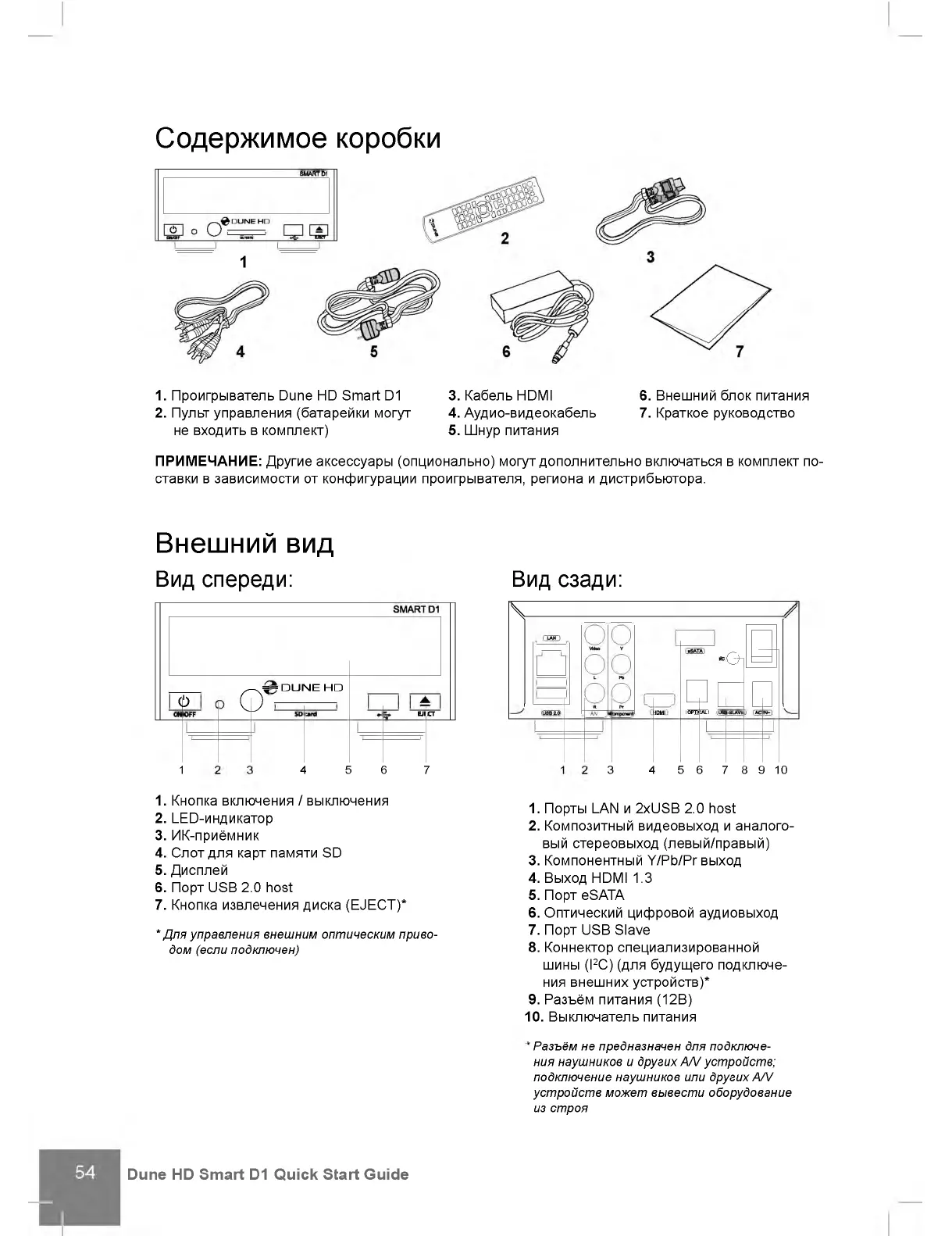 1. Проигрыватель Dune HD Smart D1 3. Кабель HDMI 6. Внешний блок питания