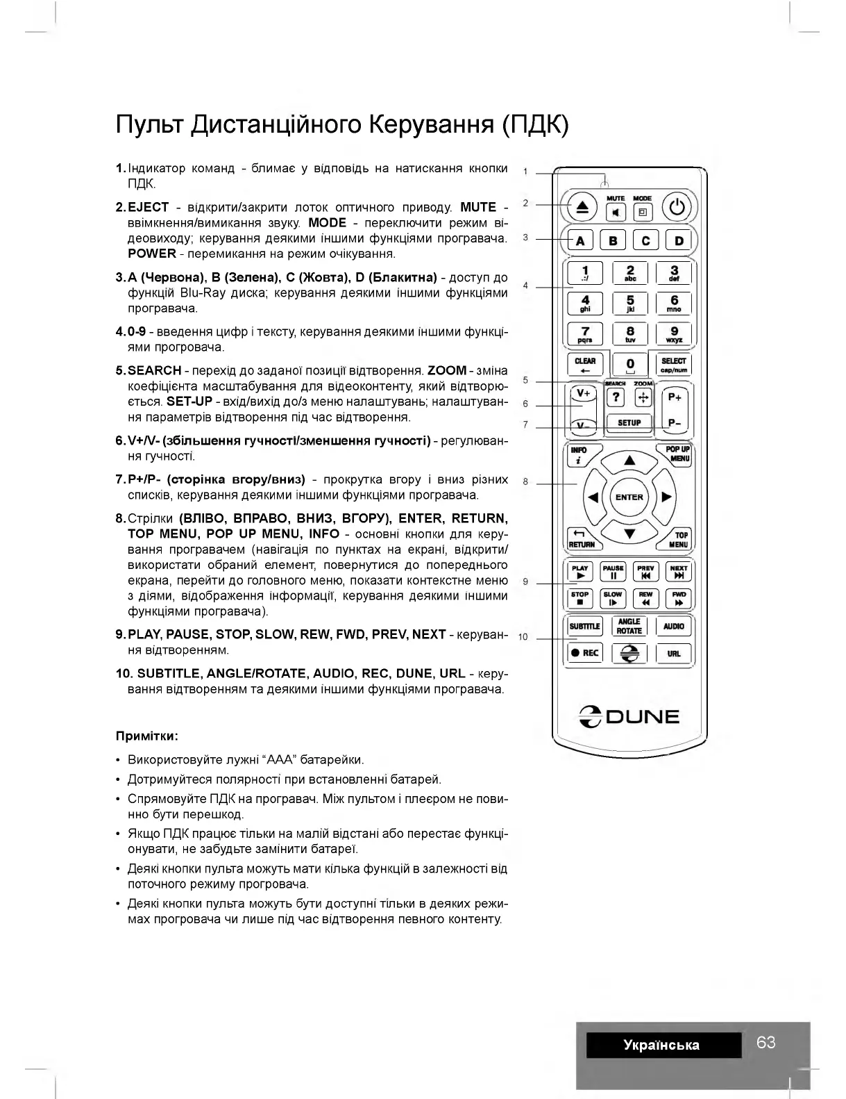 • Деяга кнопки пульта можуть мати ктька функцiй в залежностi вщ