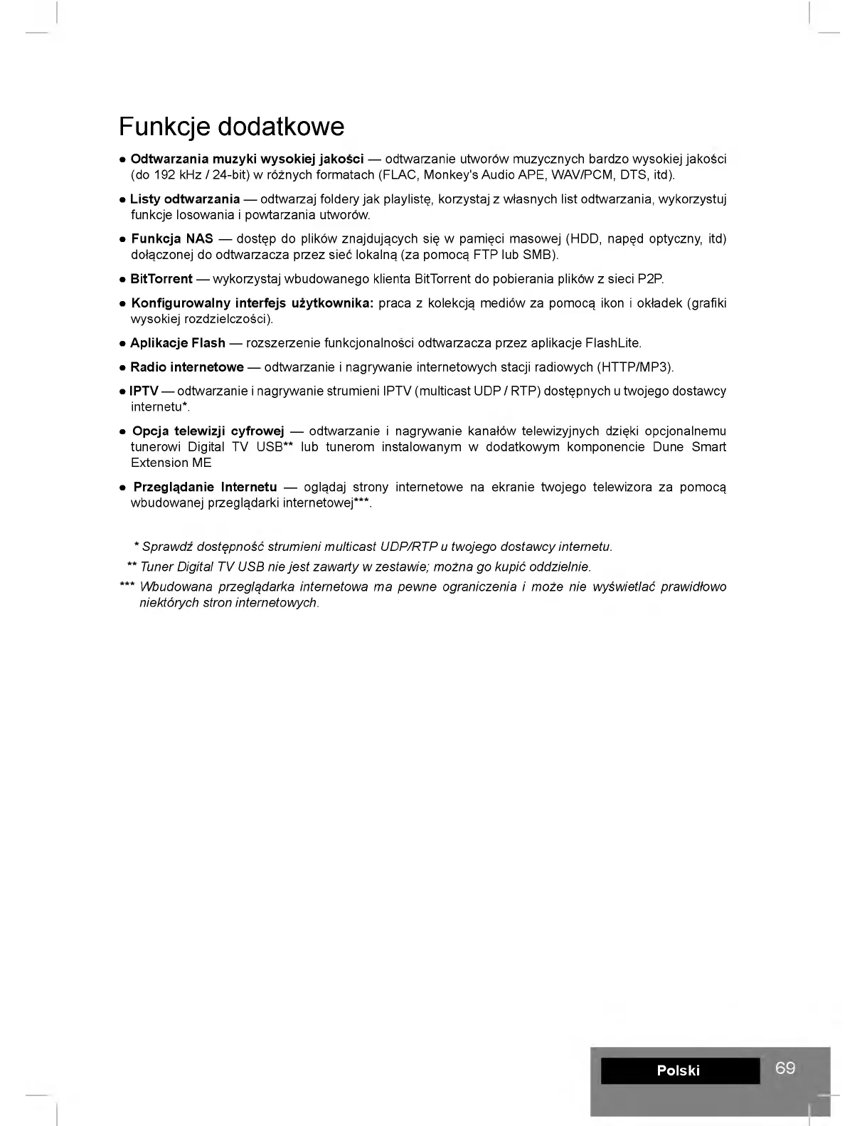 tunerowi Digital TV USB** lub tunerom instalowanym w dodatkowym komponencie Dune Smart