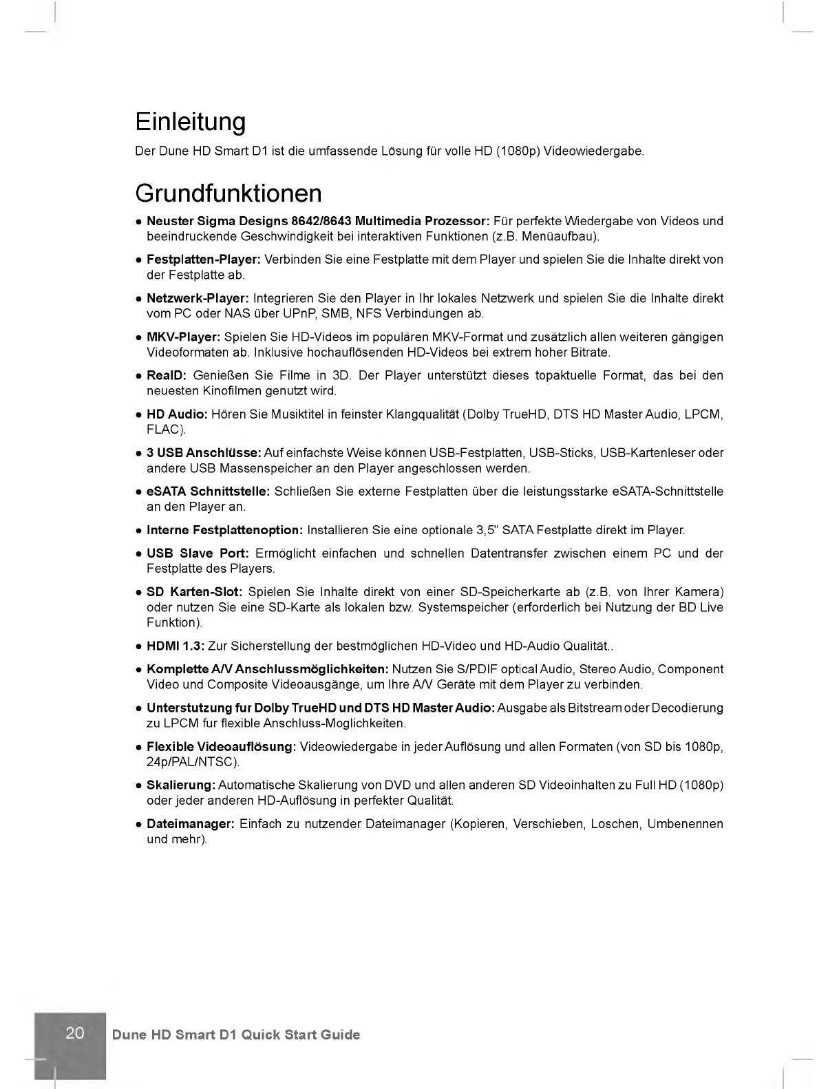 Der Dune HD Smart D1 ist die umfassende Losung fQr volle HD (1080p) Videowiedergabe.