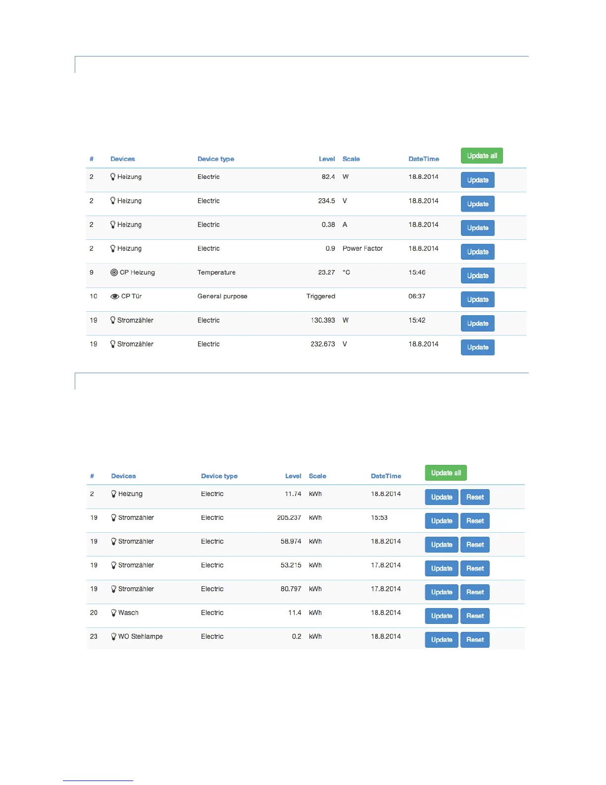 the type of the meter, the actual meter value and the meter scale is listed. The Date/time column indicates when the