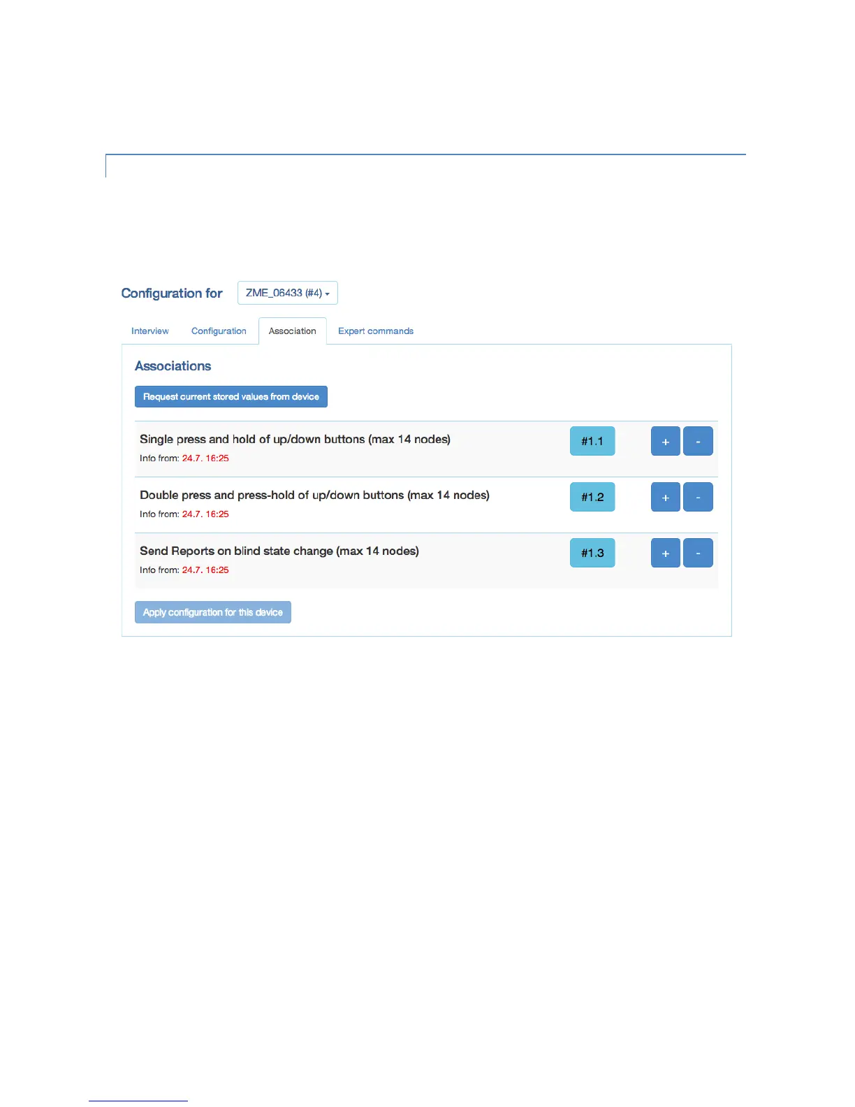 information about the association group meaning. The stored devices can be called from the actual device using a