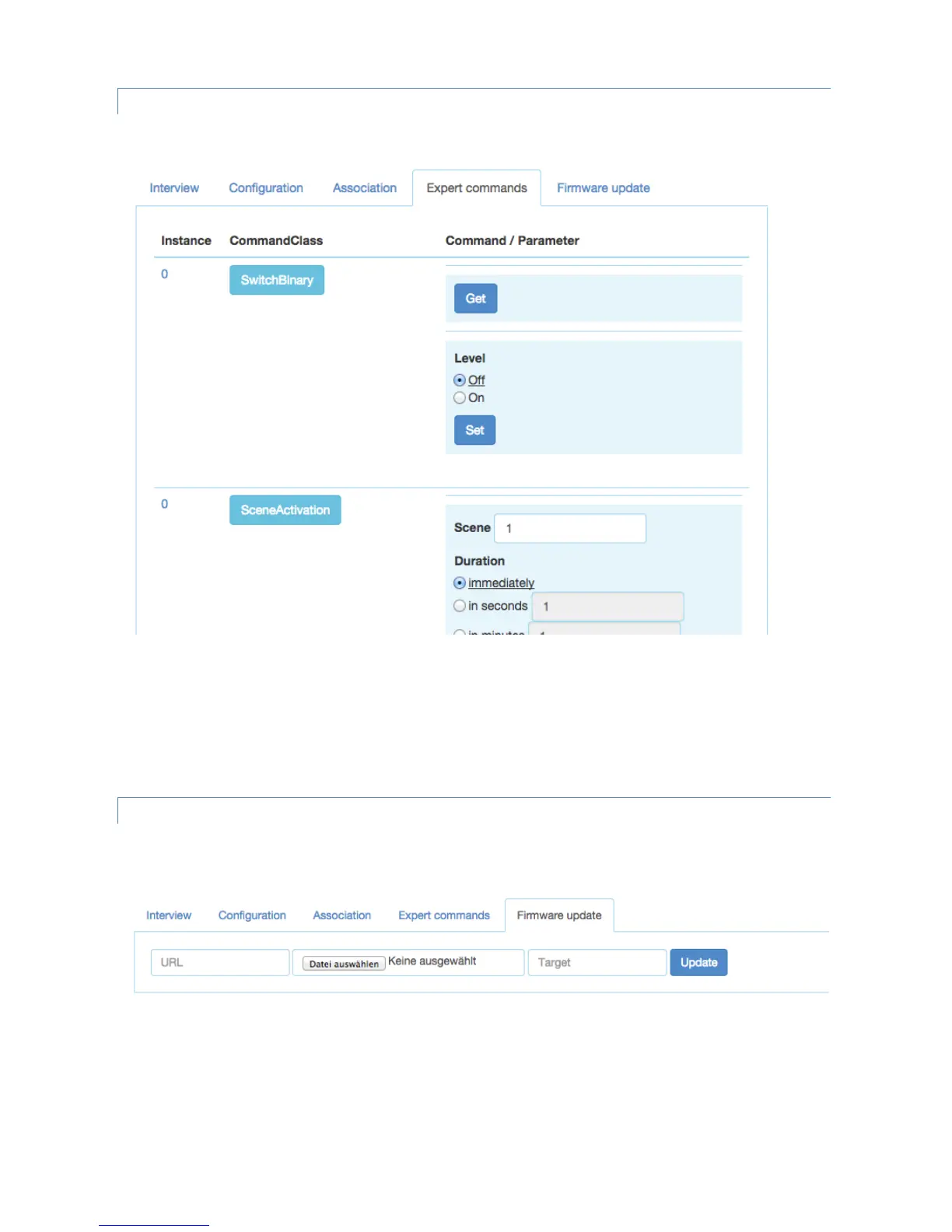 The firmware can be provided in two ways: either as URL in the format http://IP:PORT/file or as file upload using the