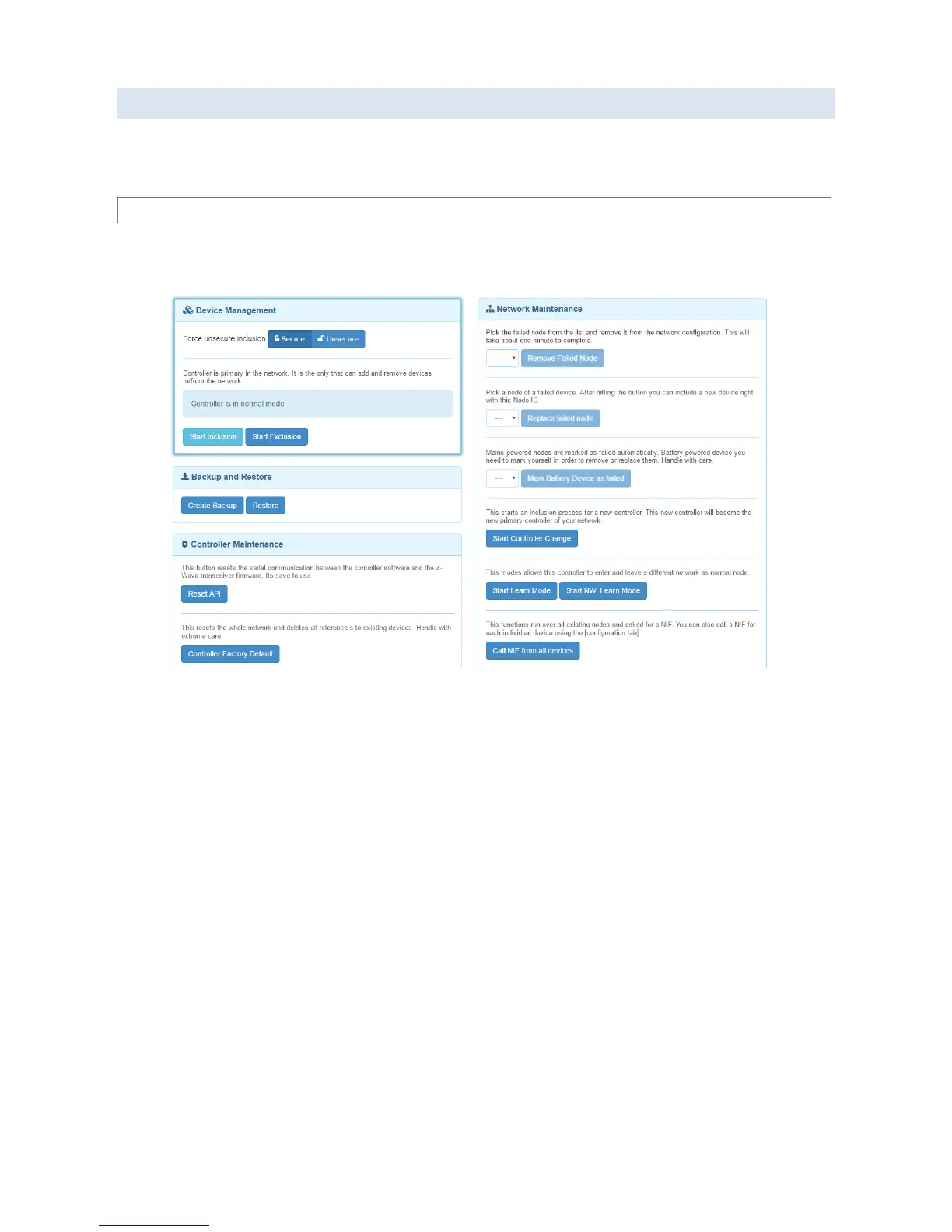 controller. The “Start Inclusion” and “Start Exclusion” buttons turn the controller into the Inclusion and Exclusion