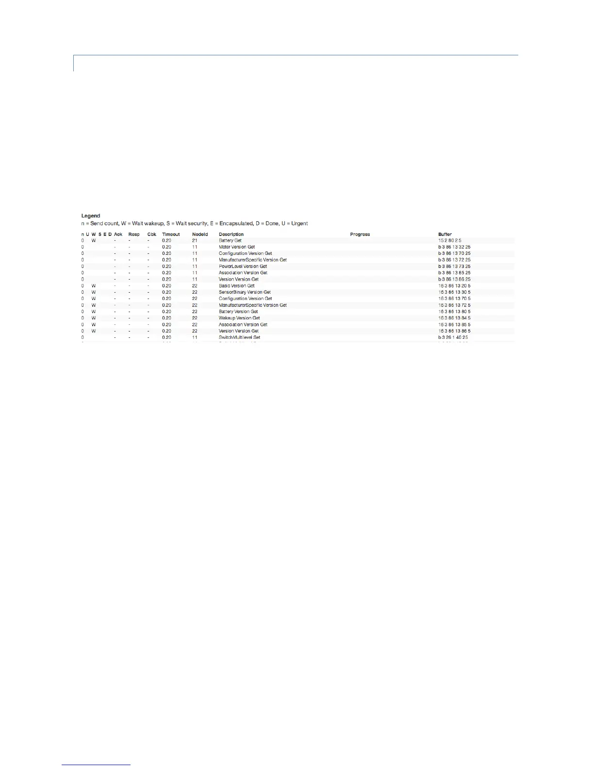 queue and then handed over to the Z-Wave chip for execution. The list shows the jobs pending and the jobs that are