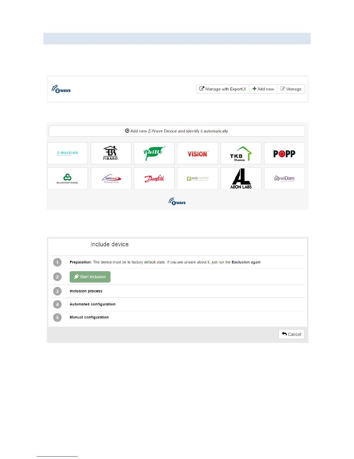 Click “Add new Z-Wave device and identify it automatically” button, or choose a brand/manufacturer of the Z-Wave