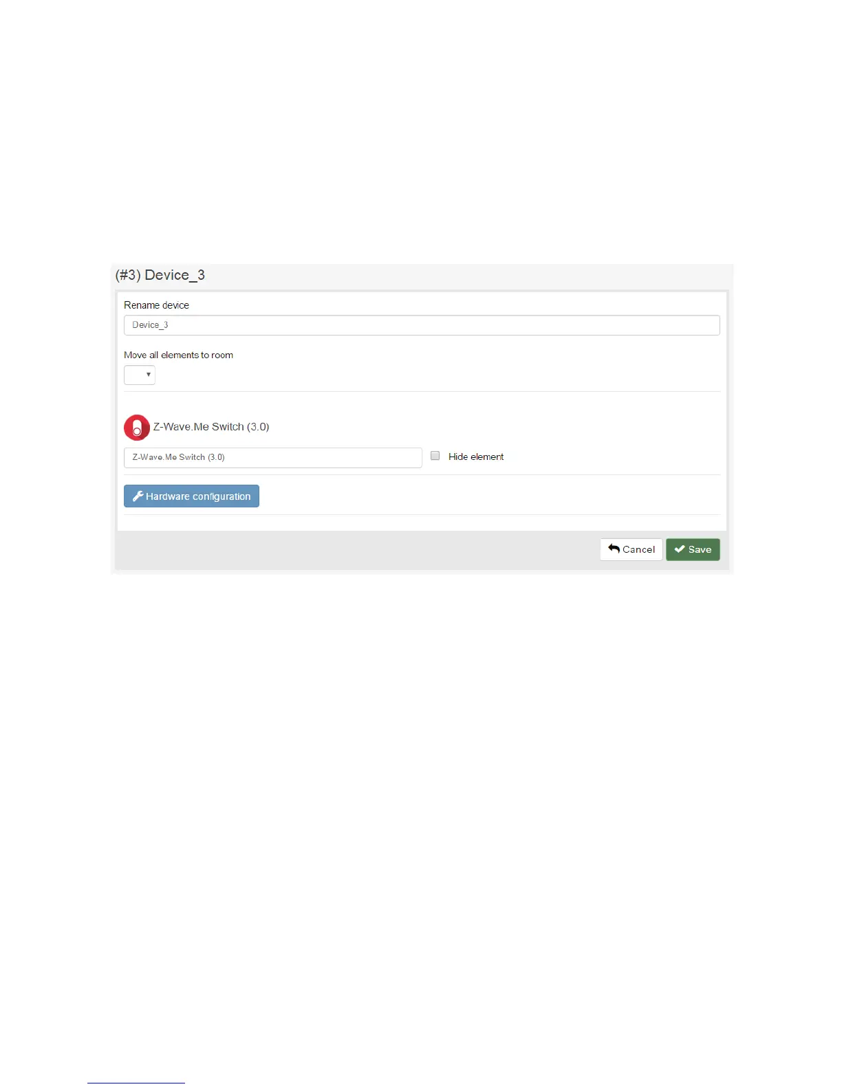 On the “Device” screen, you see and can adjust the following configuration for the Z-Wave device: