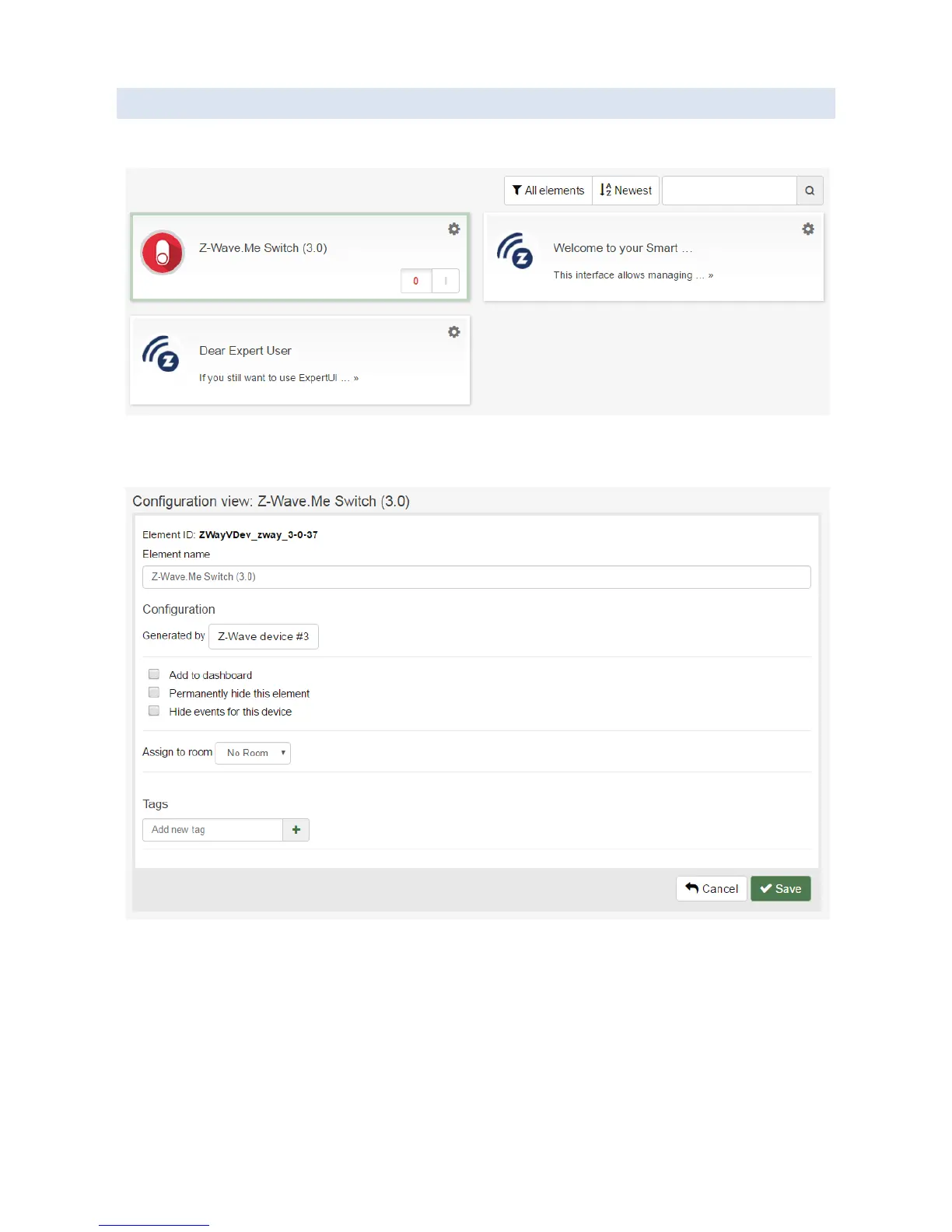 supports hiding), or delete the object (Application instance of Z-Wave Device) which generated this Element.
