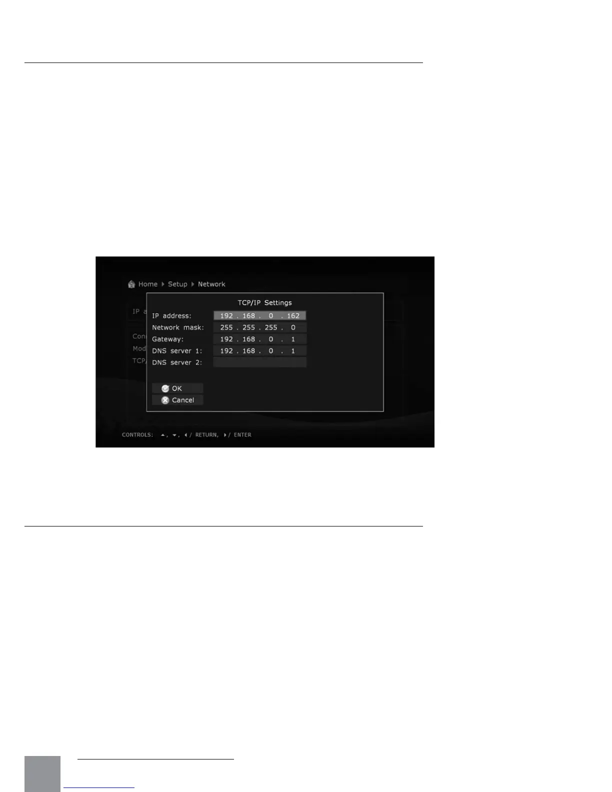 Auto (DHCP): The media player is instructed to automatically receive an IP address and