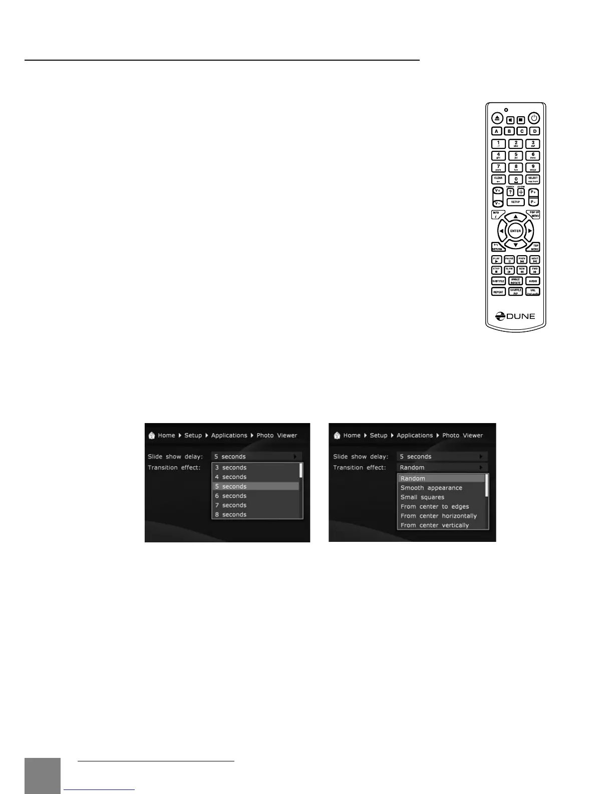 In the "Applications / Photo Viewer" section of the player settings menu it is possible to