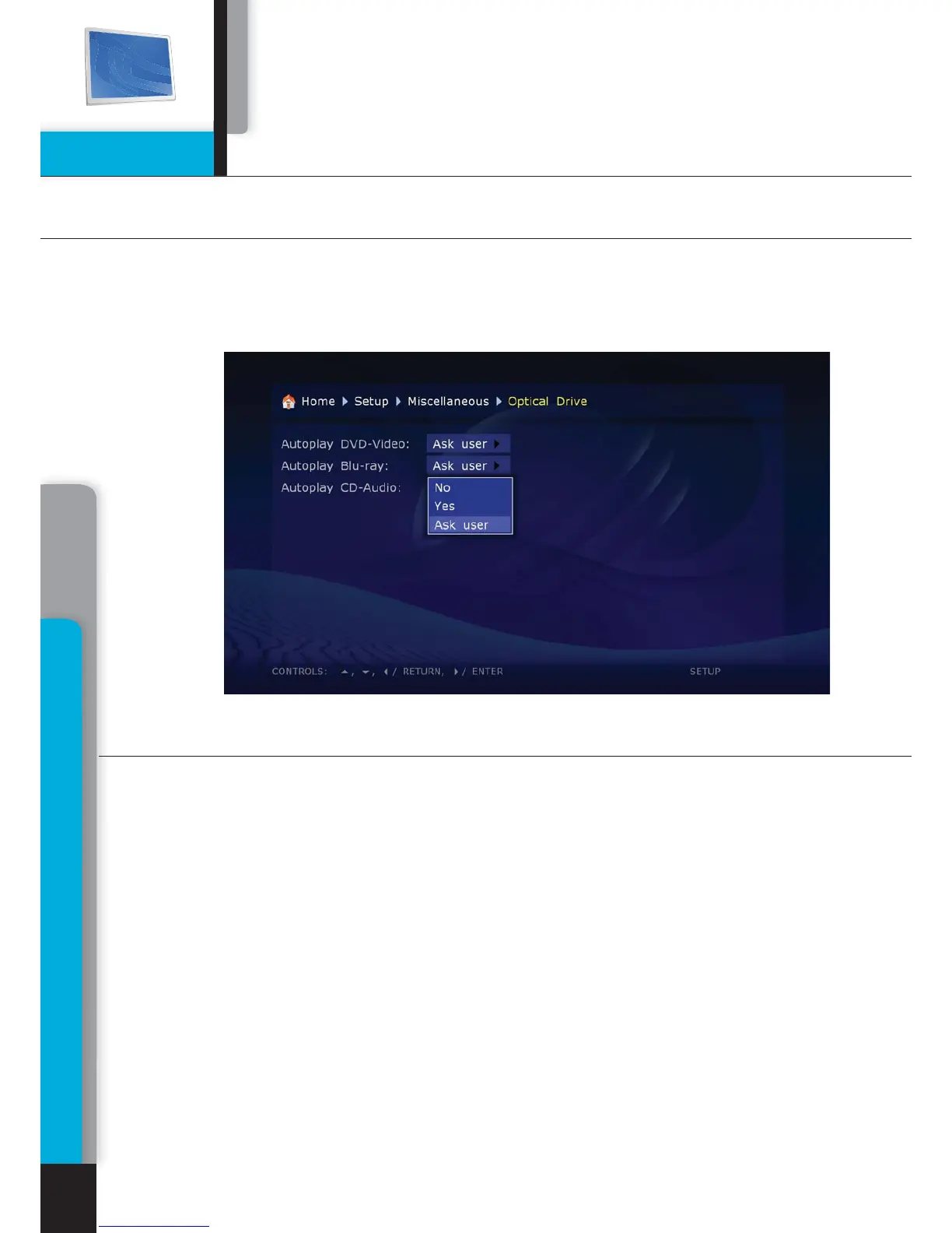 Before playing any optical discs, we suggest you to refer to the ‘Settings. Other. Optical