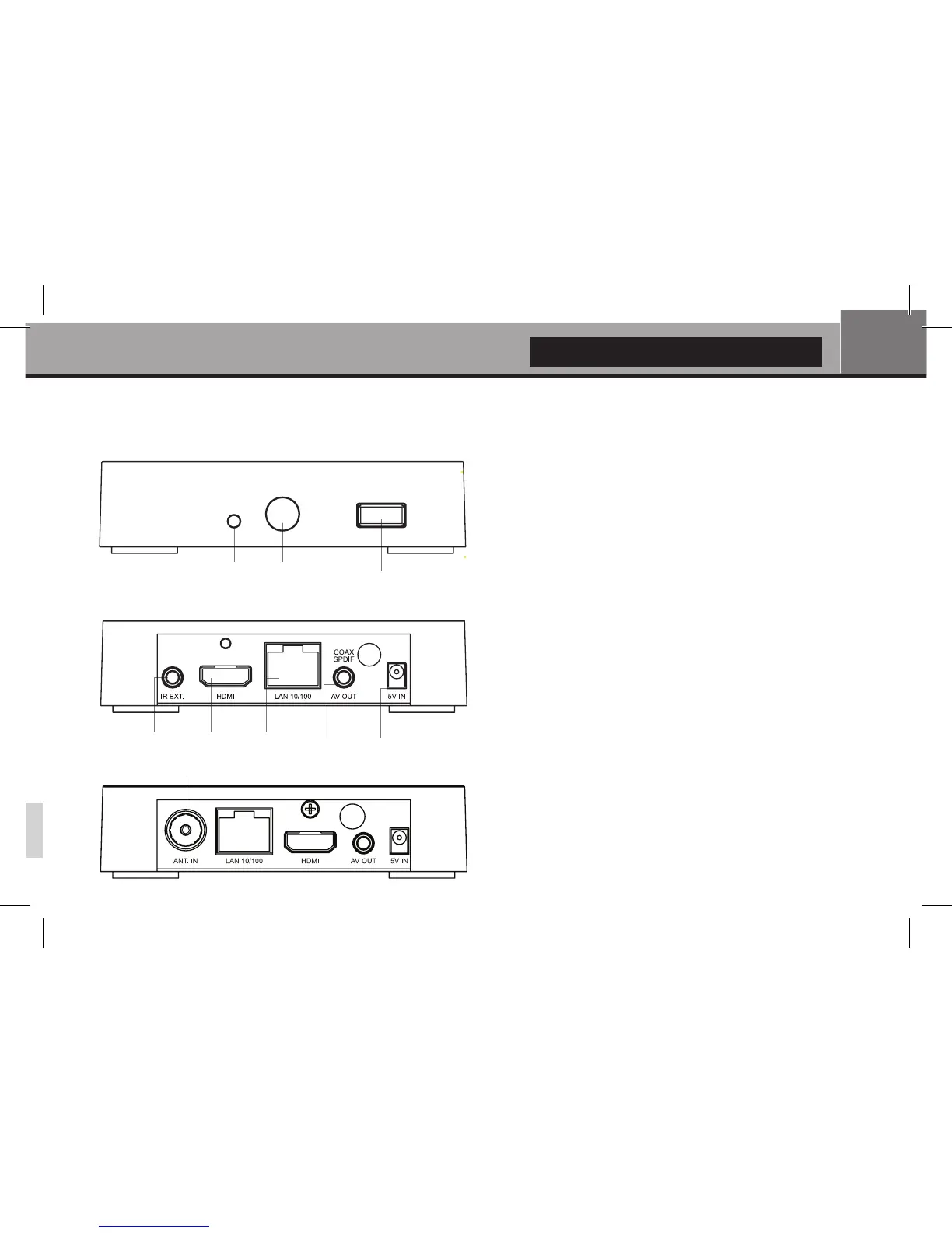 DUNE HD TV-102 - Device Exterior and Connections; Rear Panel Connections (No Tuner); Rear Panel Connections (With Tuner)
