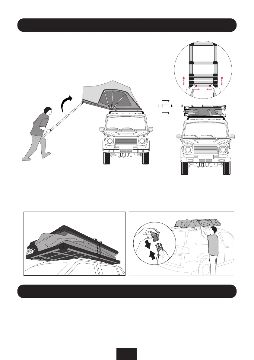 ③ Lift the ladder upward to fold the tent. Ensure no fabric is exposed