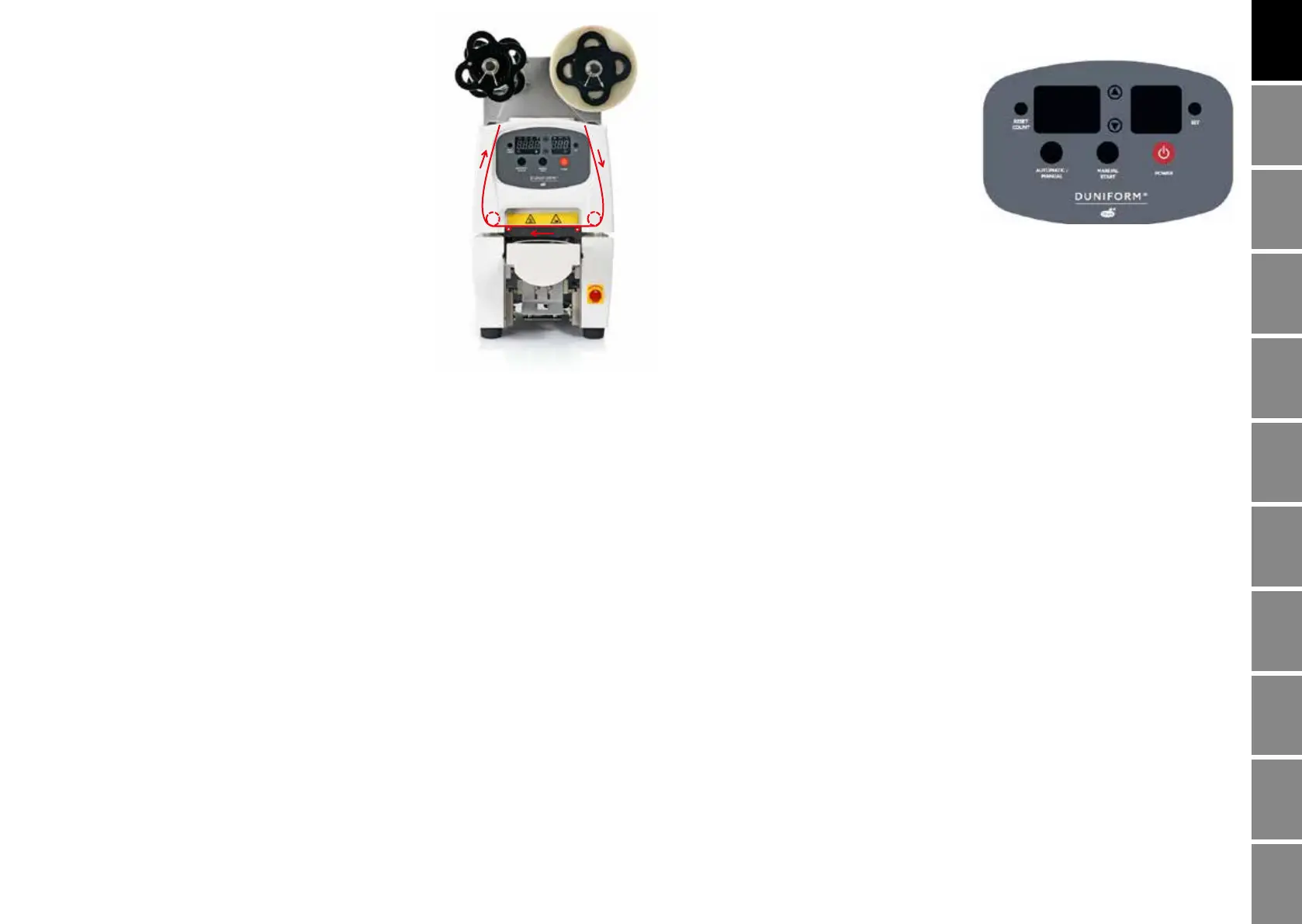 förseglingsprocessen när man trycker på knappen MANUAL START.