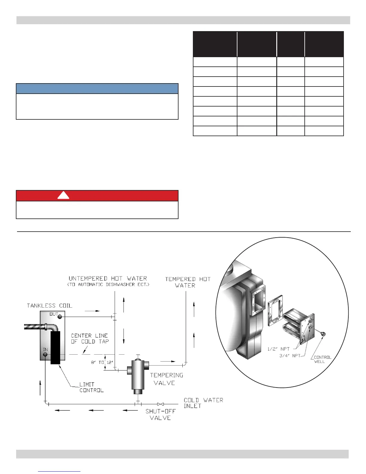 below. Flow restrictor may be required on tankless coil inlet