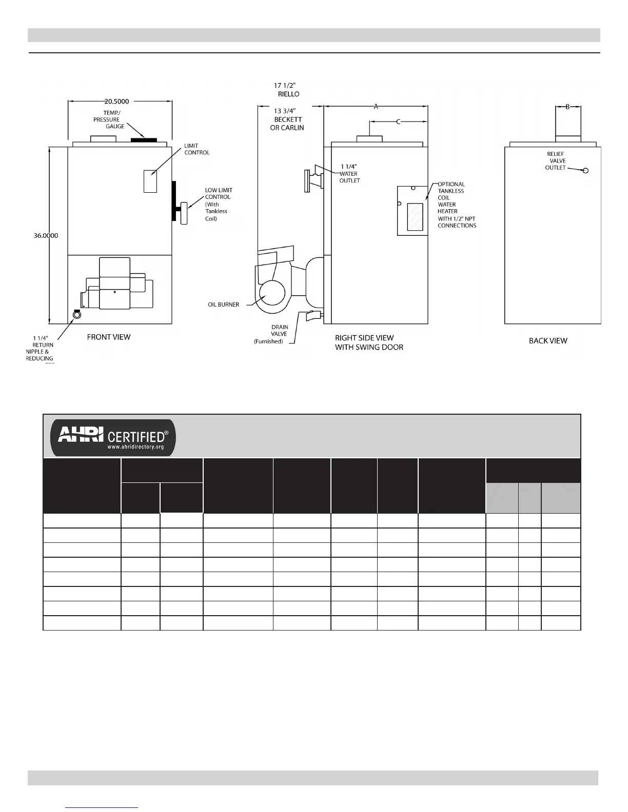 ‡ Net AHRI Water Ratings based on piping and pickup allowance of 1.15. Consult manufacturer before selecting boiler