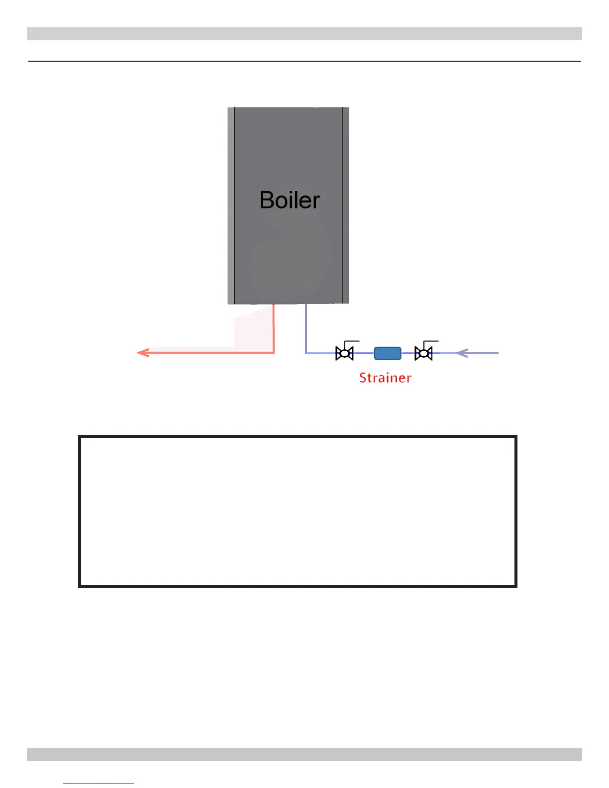 A strainer ltering potable water before entering the boiler is highly recommended to prevent