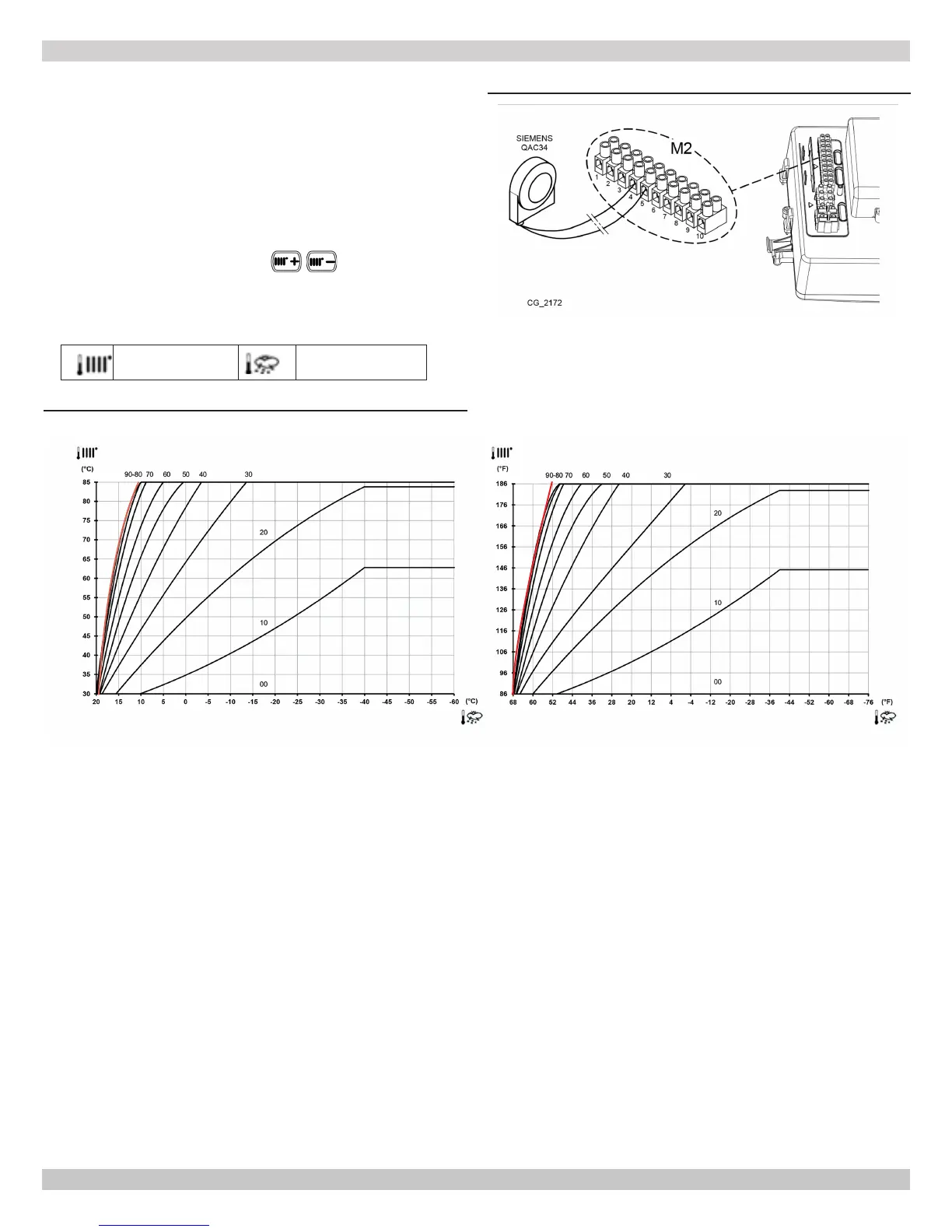 Temperatures below -40 °F (-40 °C), maximum heating ow temperature set point no longer increases, curves shown on graph