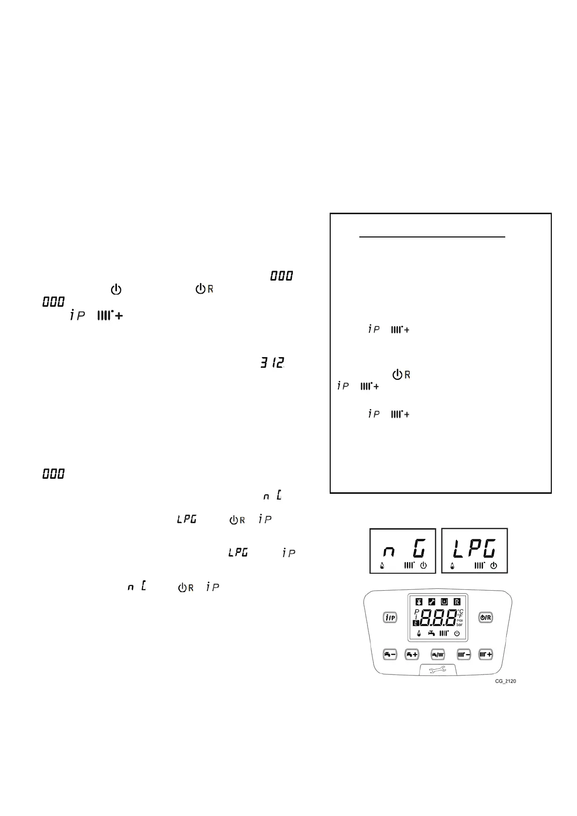 • On a Gas E (LPG) supply the display show , press