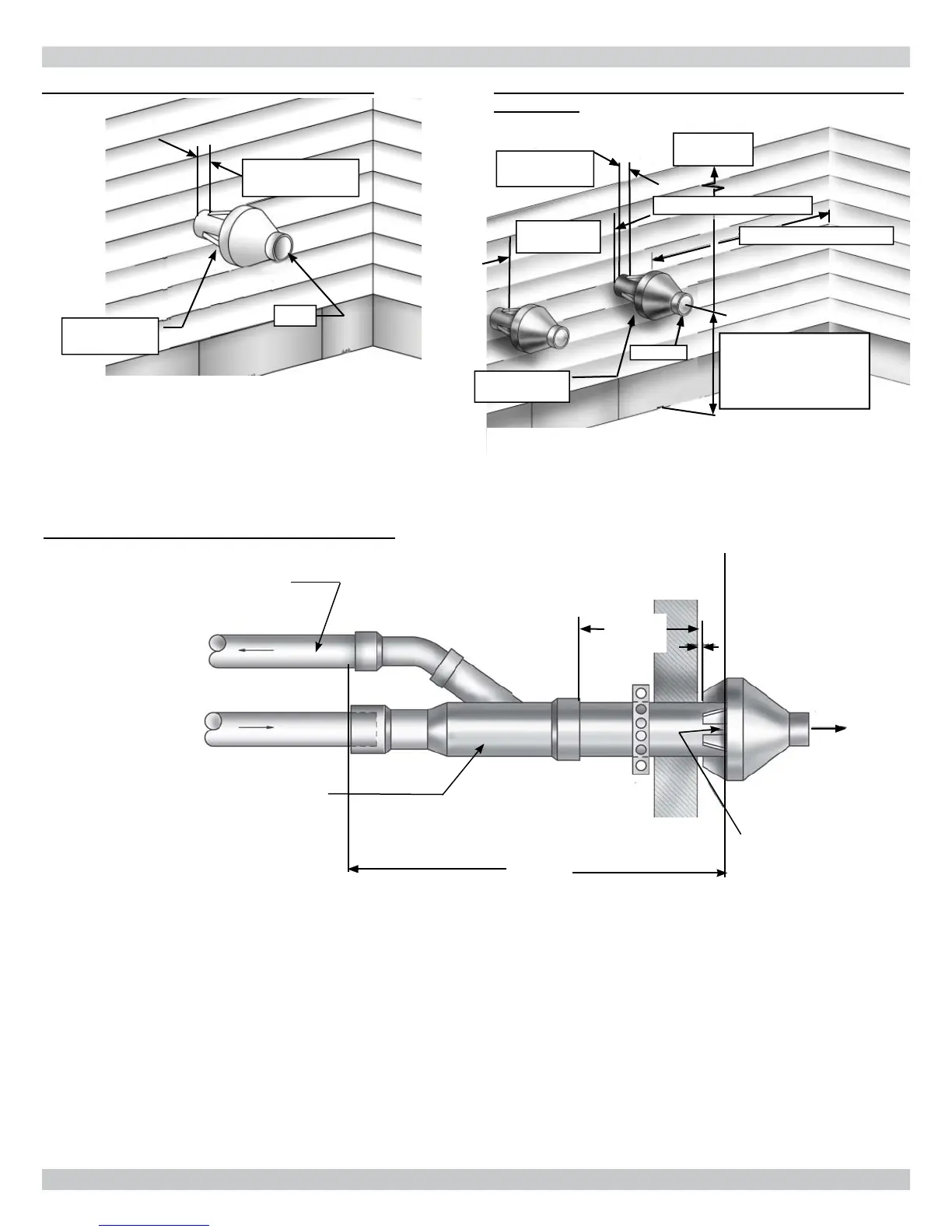 both combustion air and vent pipes. 12" (305mm) is minimum