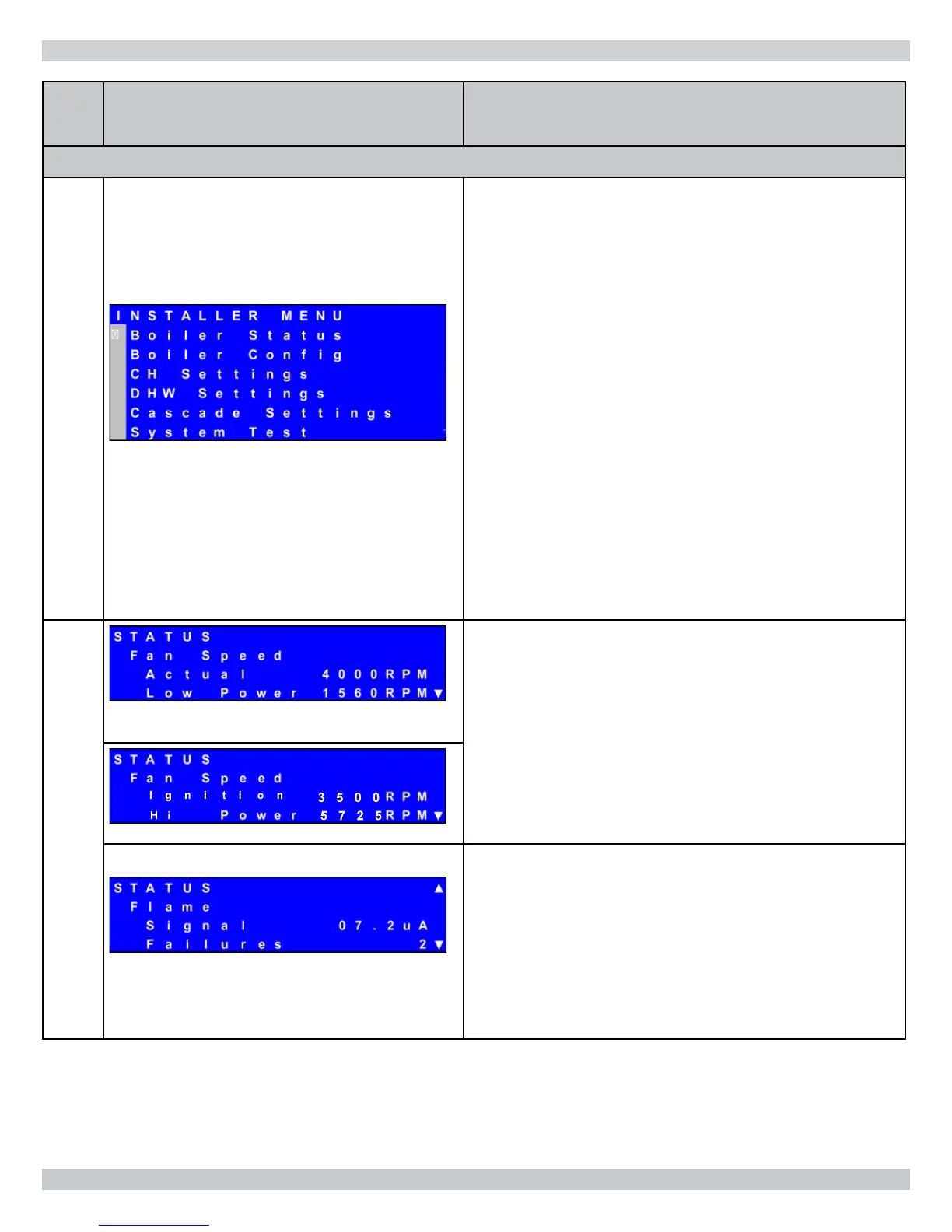 • ‘Boiler Status’ submenu – User monitors detailed boiler