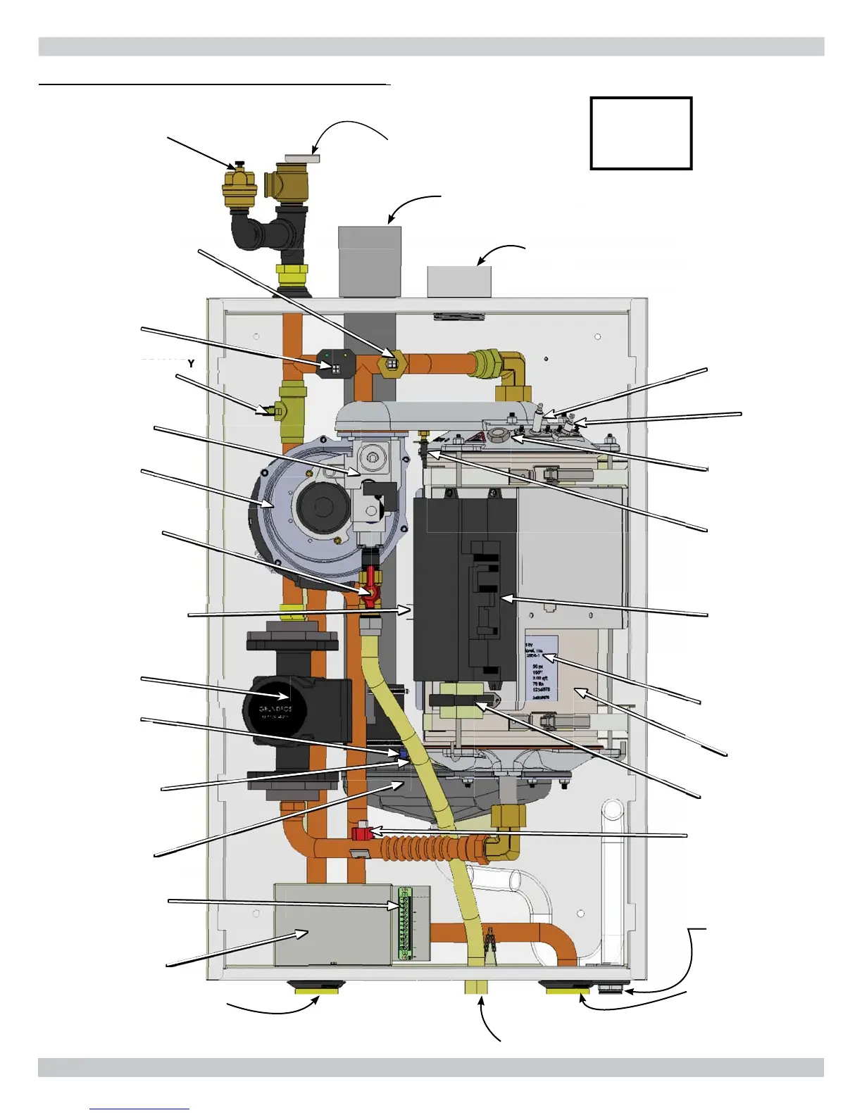 FIGURE 3-4 Boiler Components 50/75/100 MBH (View from Front of Boiler) As seen on front cover