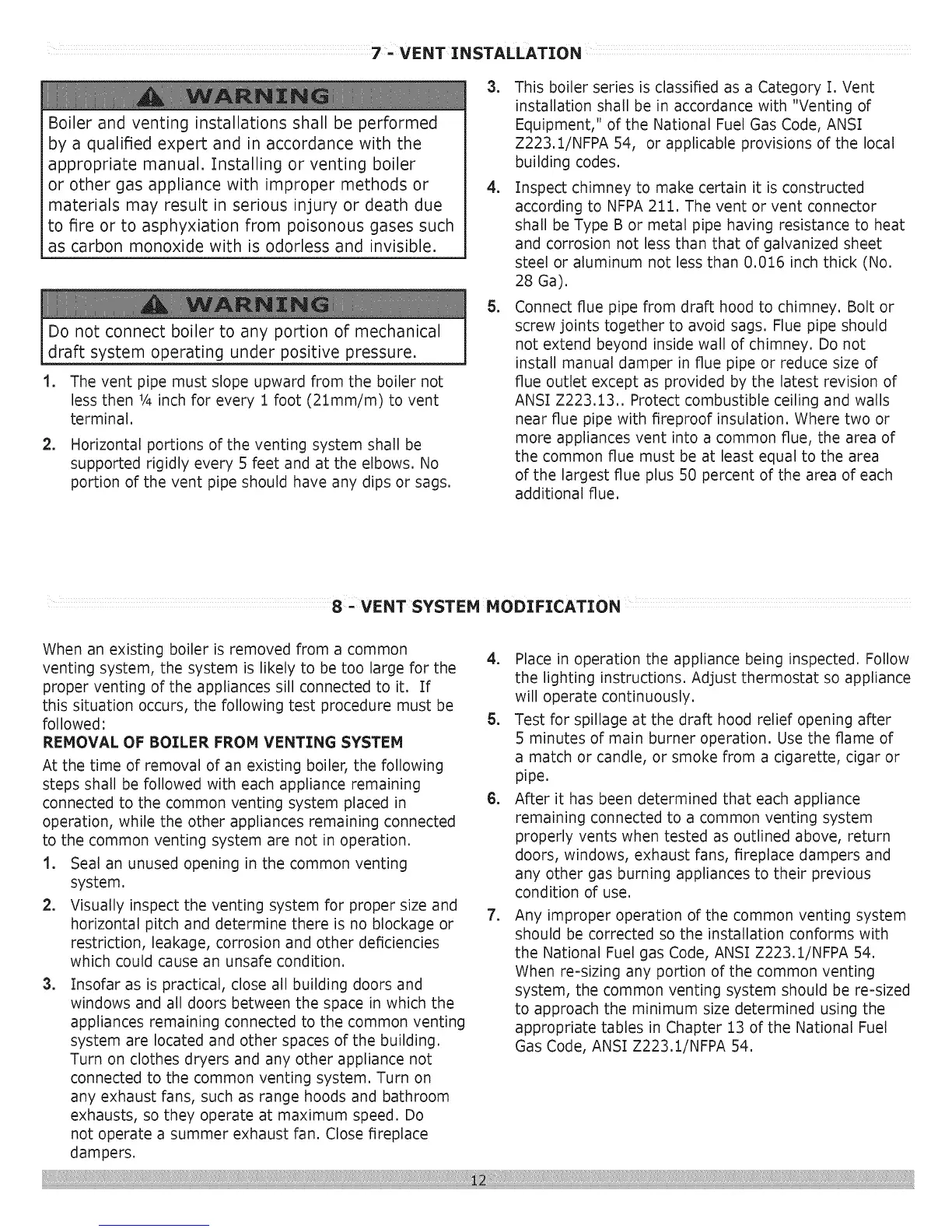3. This boiler series is classified as a Category I. Vent