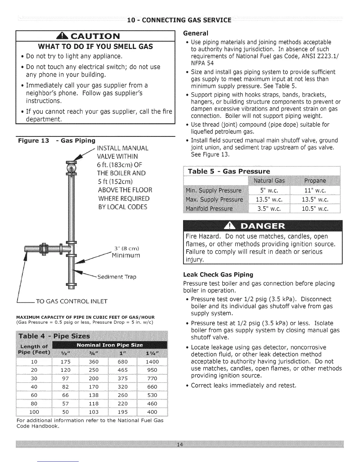 (Gas Pressure = 0.5 psig or less, Pressure Drop = 5 in. w/c)