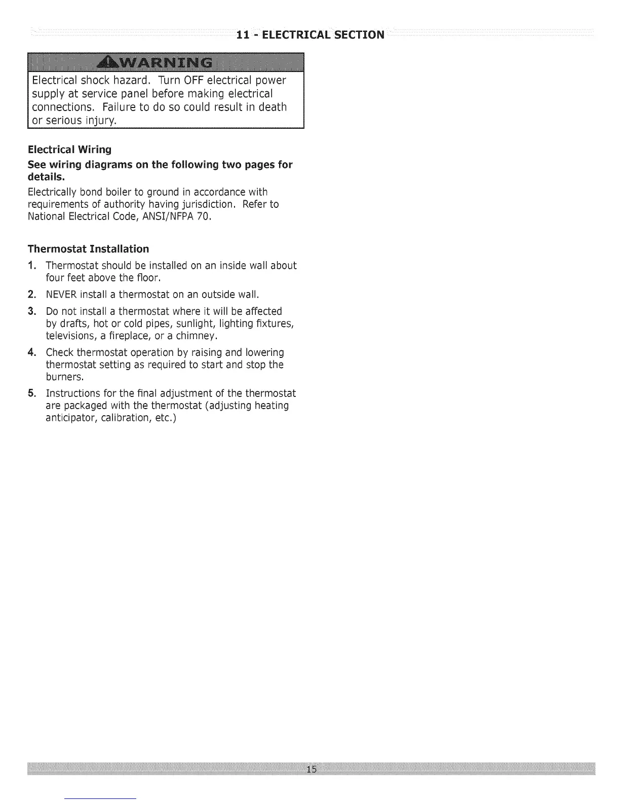 Electrically bond boiler to ground in accordance with