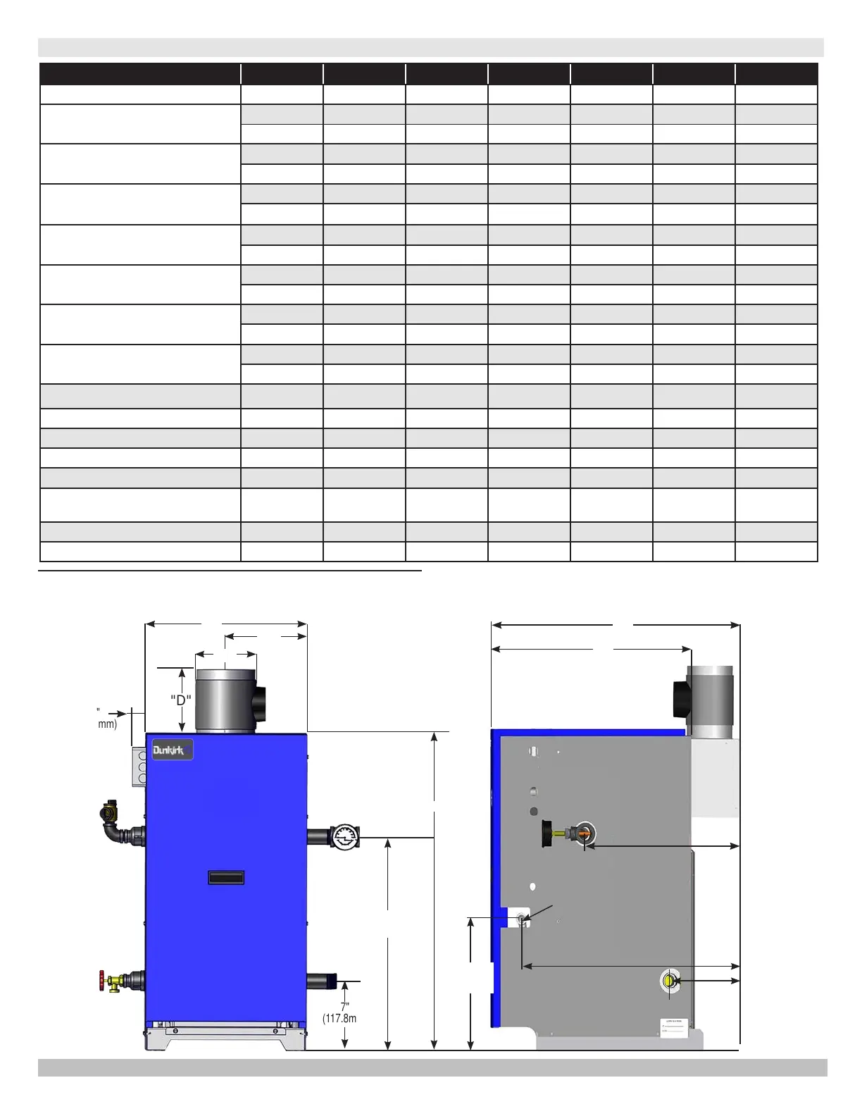 Boiler Weight, less pkg - Lbs (KG) 170 (77) 210 (96) 250 (114) 280 (128) 320 (145) 350 (159) 390 (177)