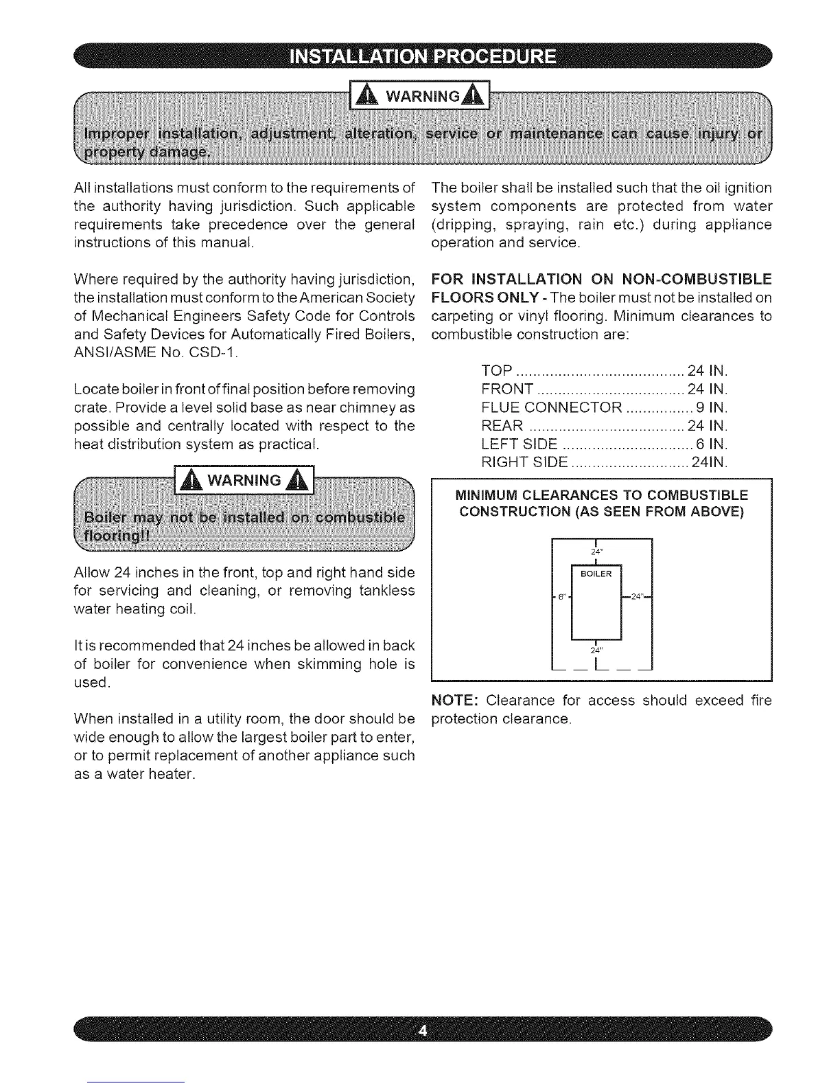 MINIMUM CLEARANCES TO COMBUSTIBLE