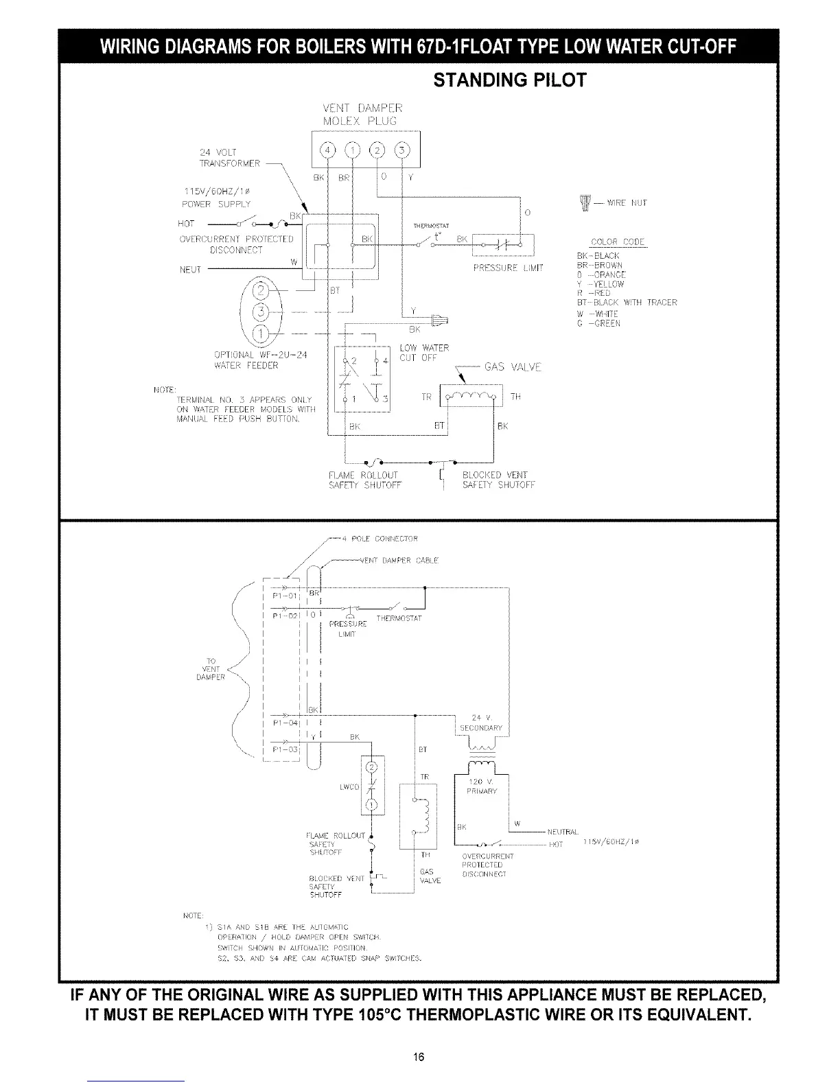 IT MUST BE REPLACED WITH TYPE 105°C THERMOPLASTIC WIRE OR ITS EQUIVALENT.