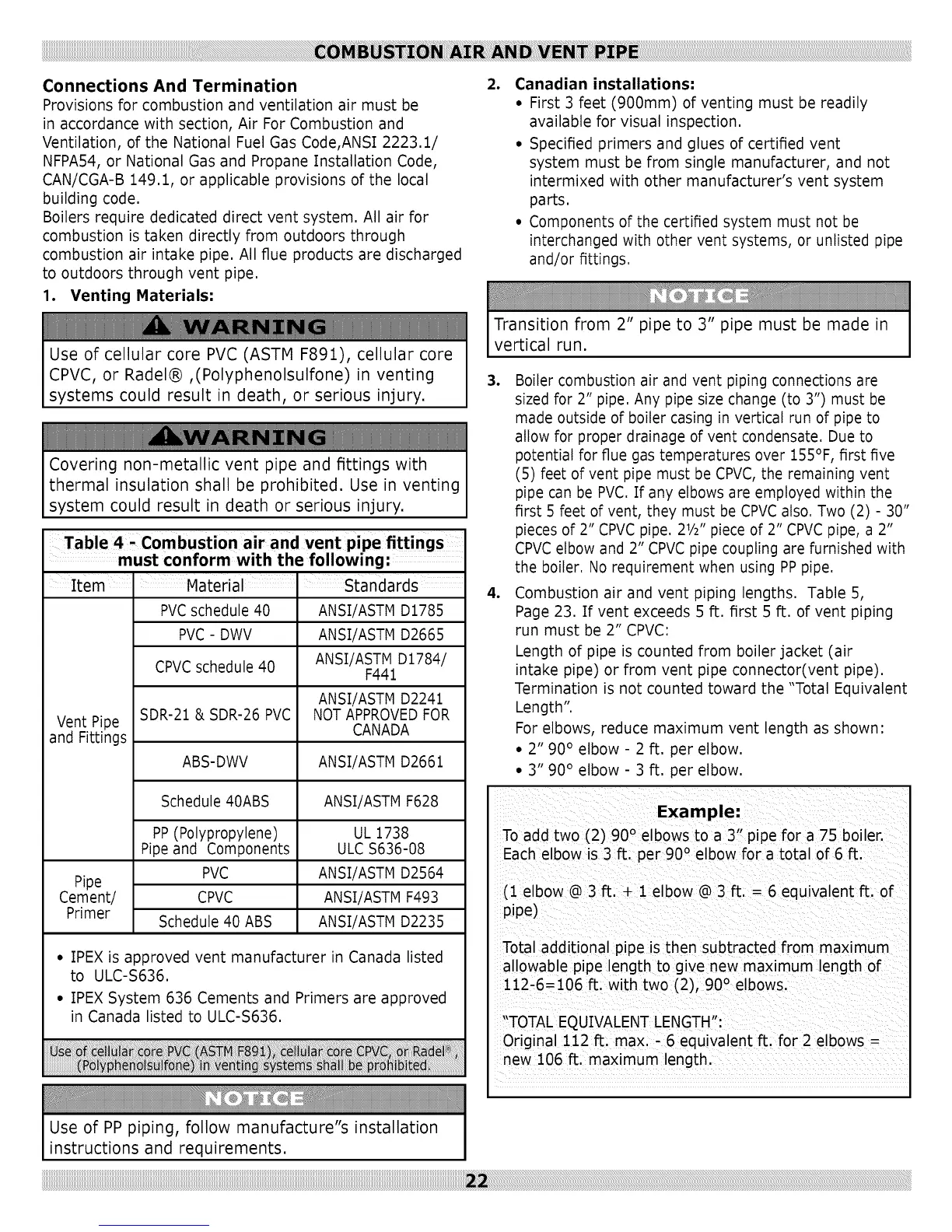 first 5 feet of vent, they must be CPVCalso. Two (2) - 30"