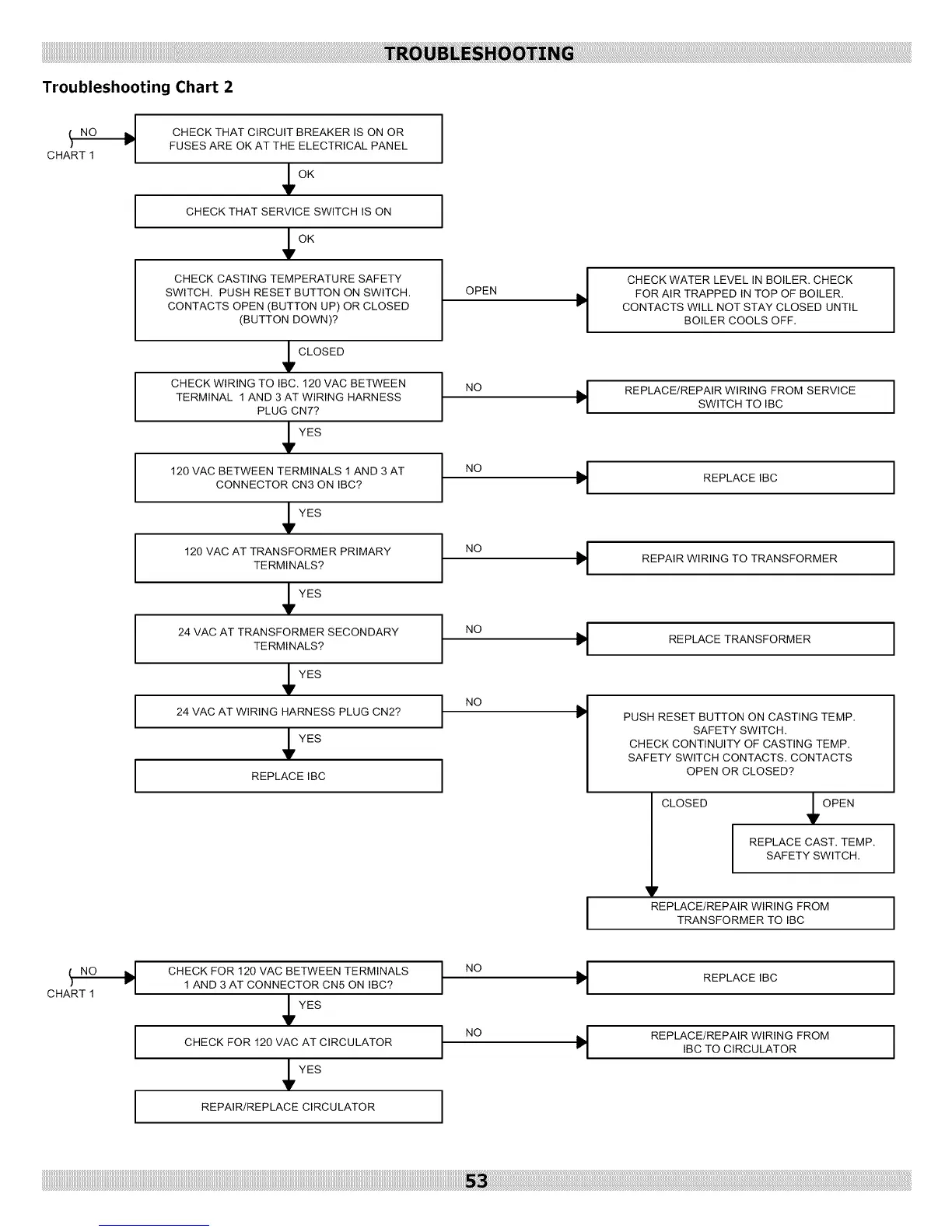 CHECK WIRING TO IBC. 120 VAC BETWEEN