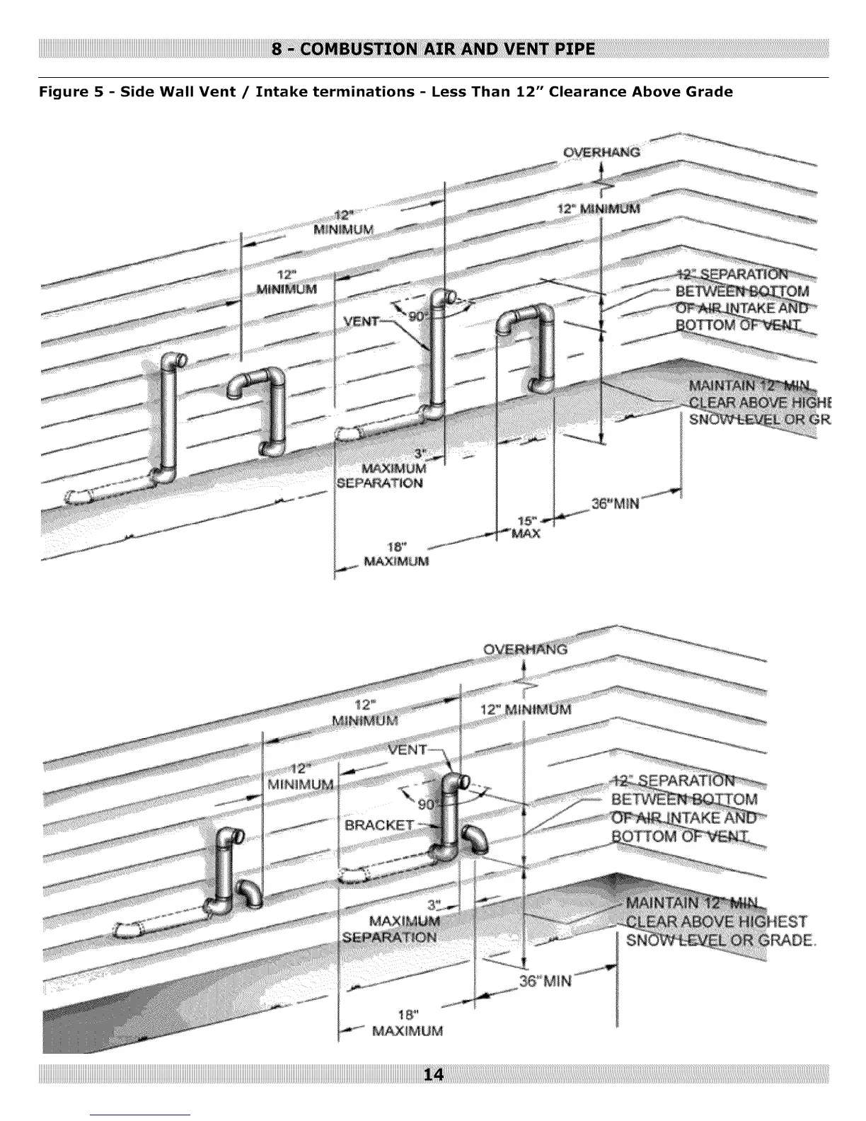 Figure 5 - Side Wall Vent / Intake terminations - Less Than 12" Clearance Above Grade