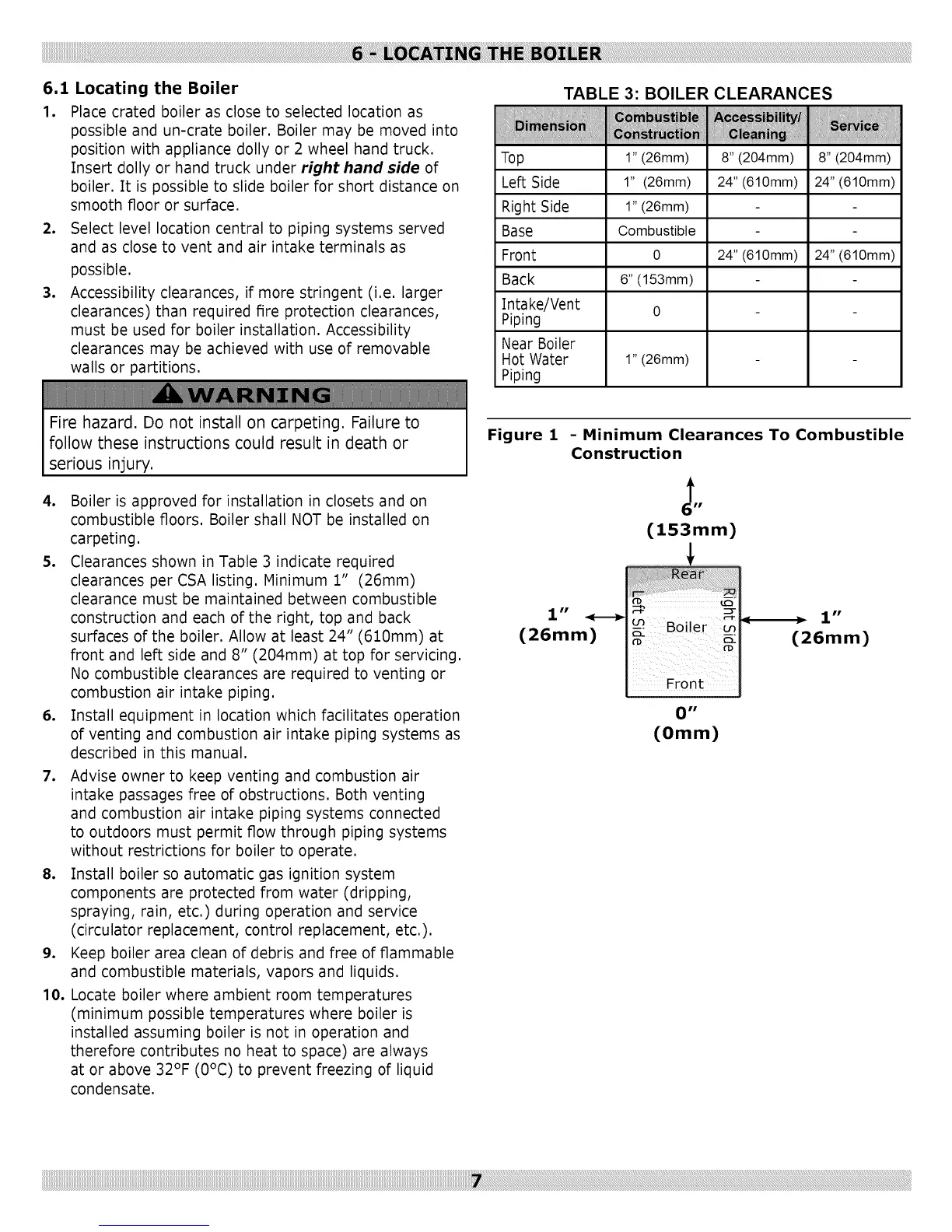surfaces of the boiler. Allow at least 24" (610mm) at