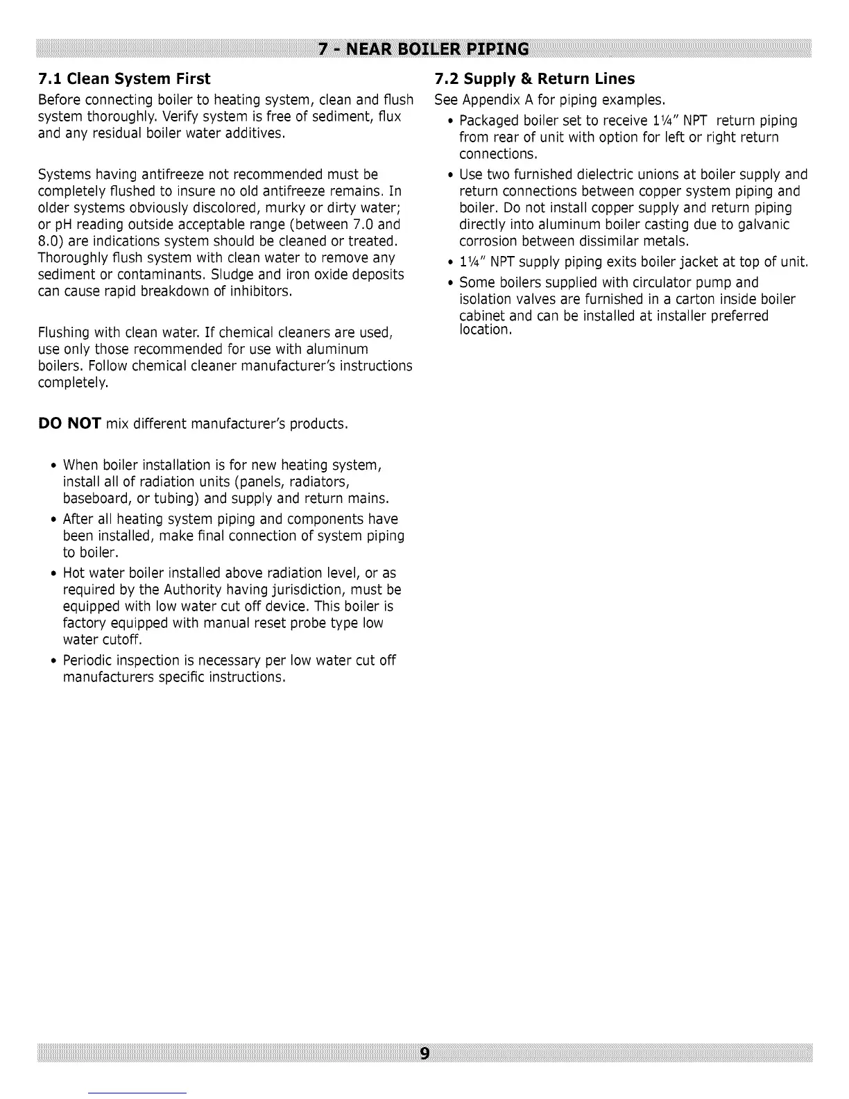 • 11/4"NPT supply piping exits boiler jacket at top of unit.
