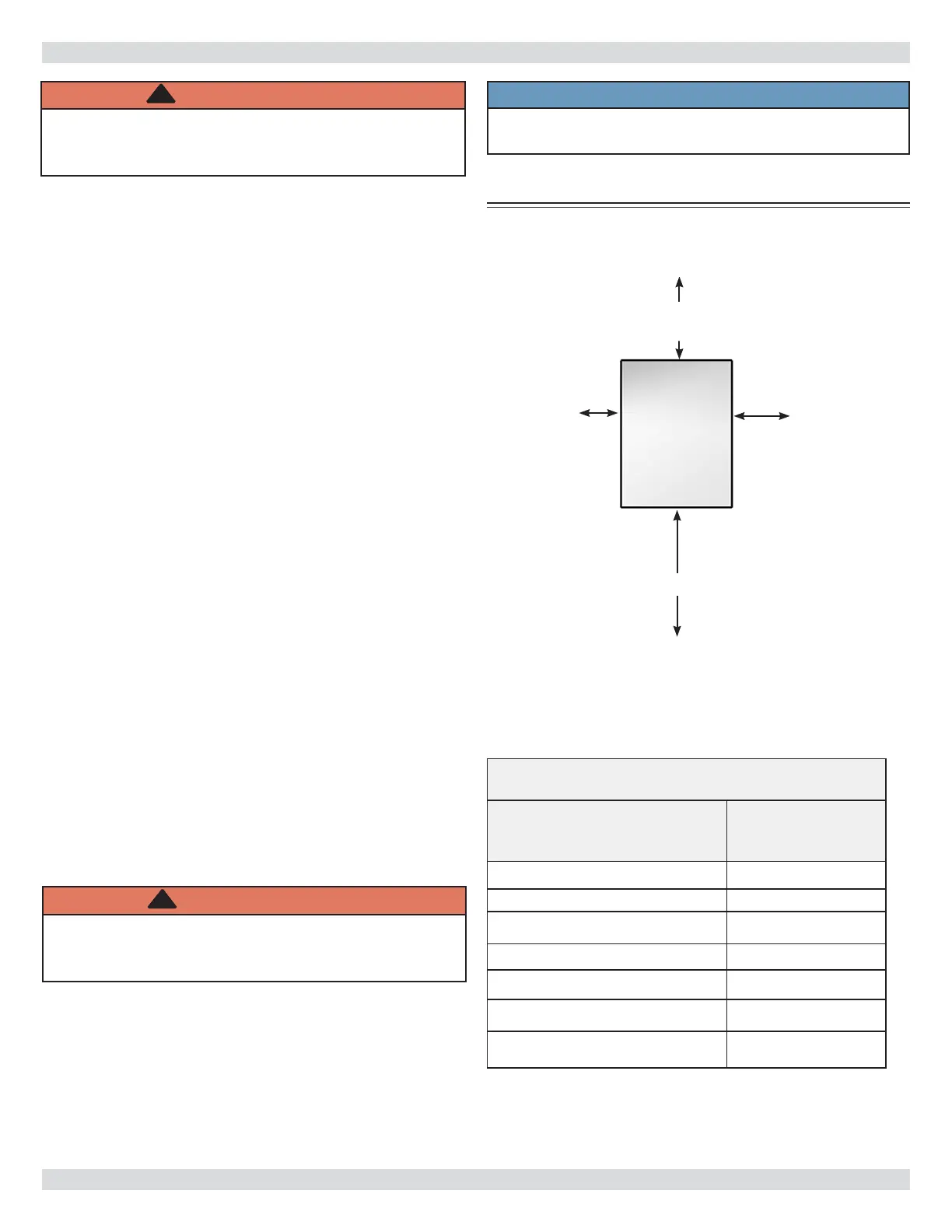 Table 1 - BOILER MINIMUM CLEARANCE TO