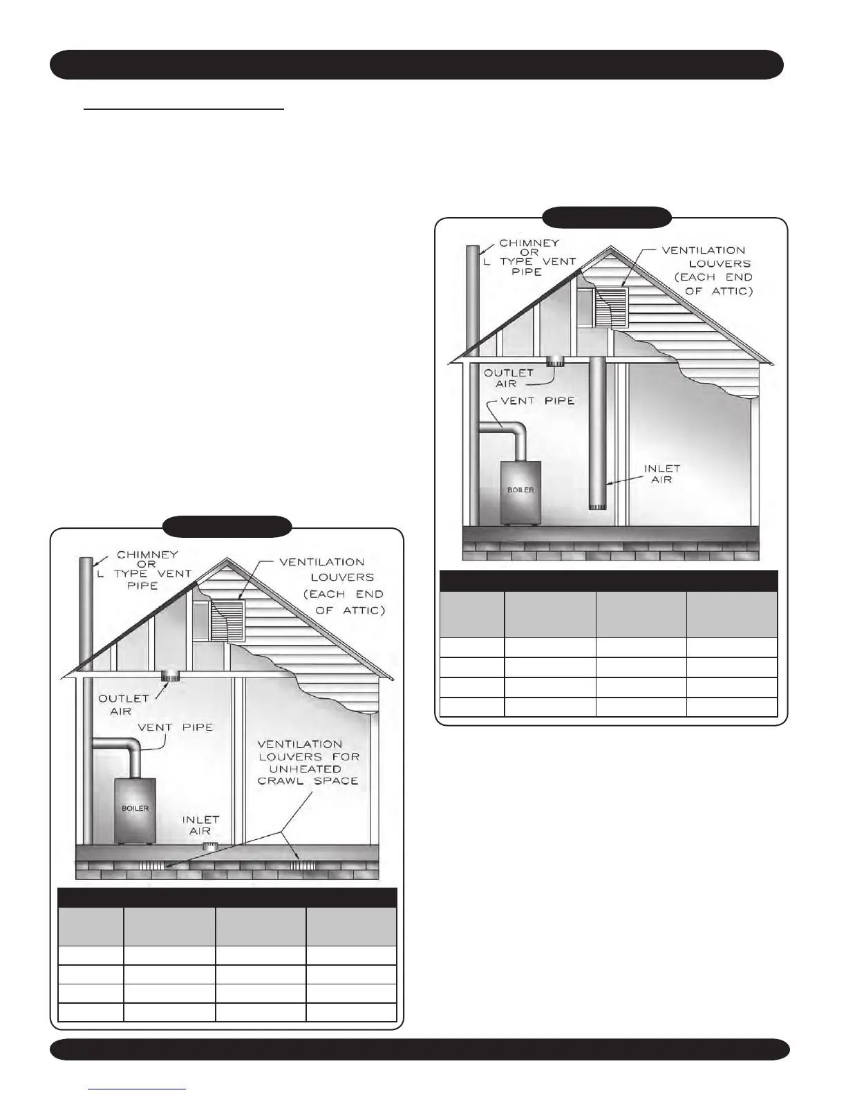FRESH AIR DUCT CAPACITIES (1 Square inch per 4,000 Btuh)
