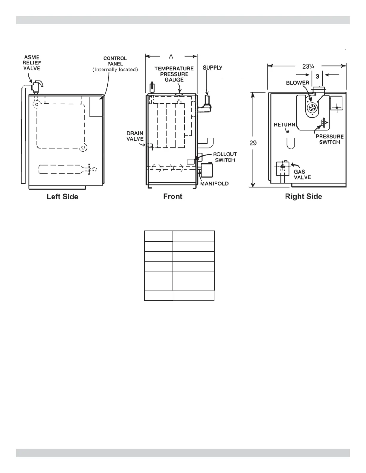 Dunkirk XEB-4 - Boiler Dimensions; Dimensional Drawings; Model Widths (A)