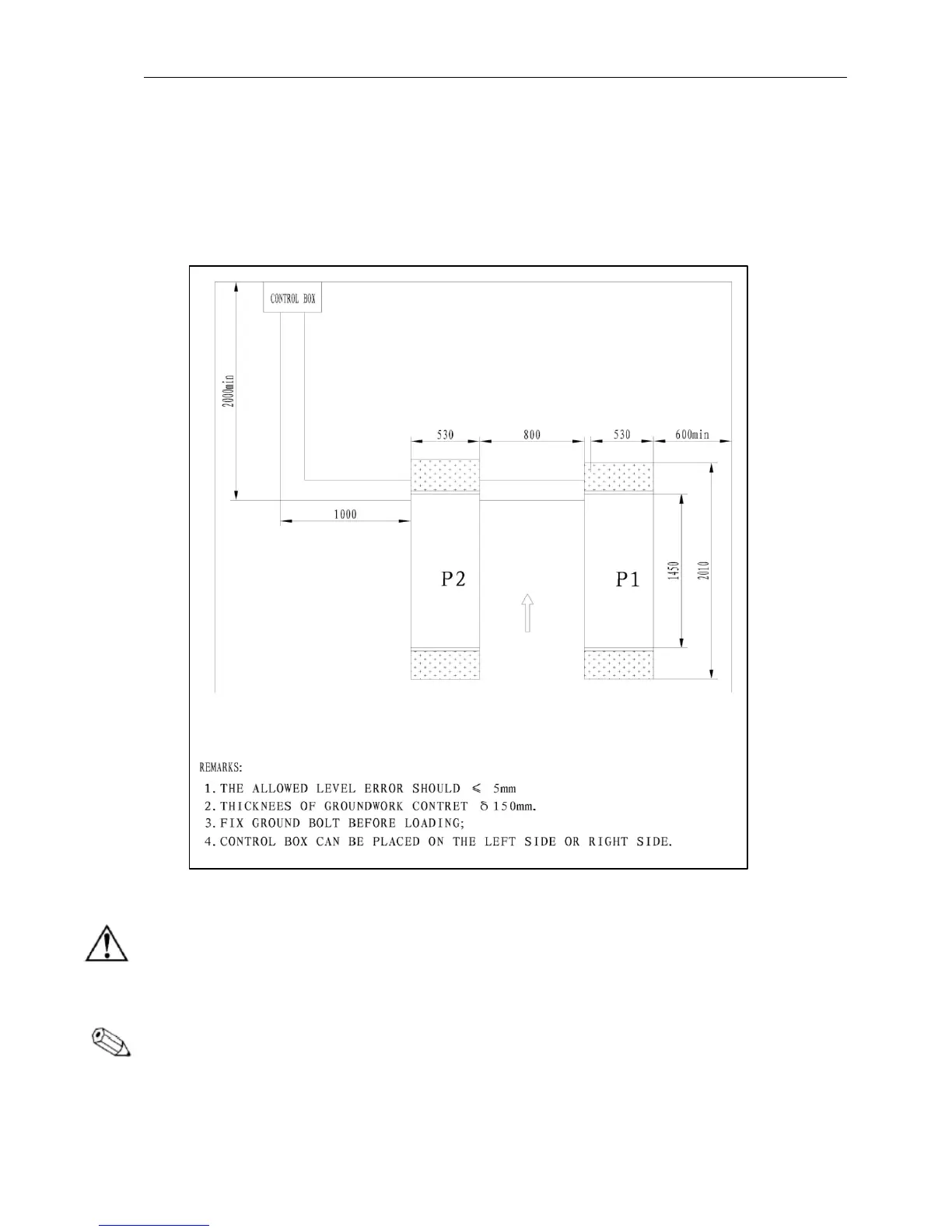 Note:ThefoundationoftheendoftheliftplatformP1,P2isthestructureofconcrete.Whenthethicknessofinsidelevelgroundis