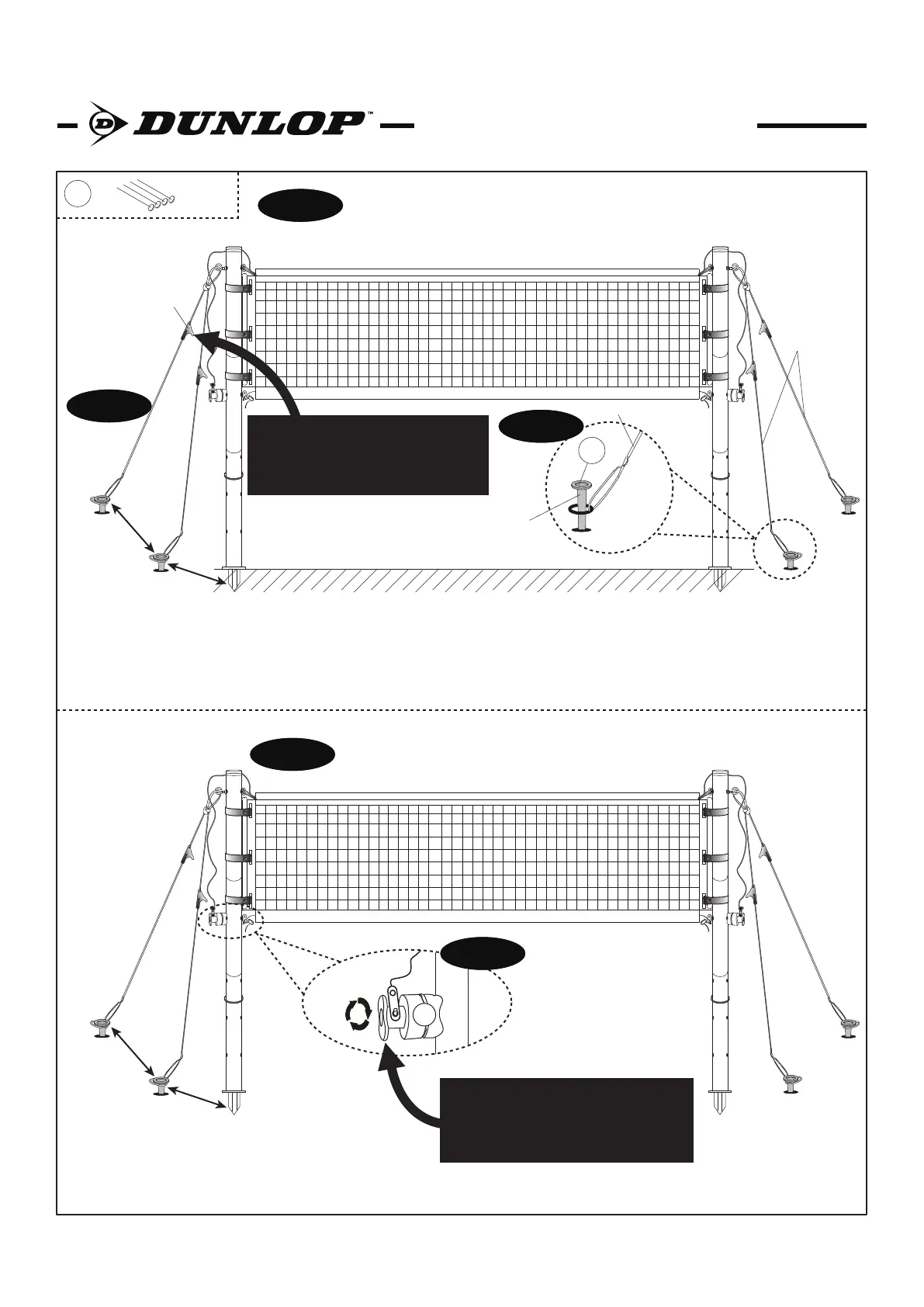 Stretch the assembled Net and poles across the playing area until the Net is taut. Press the Pole Anchors into