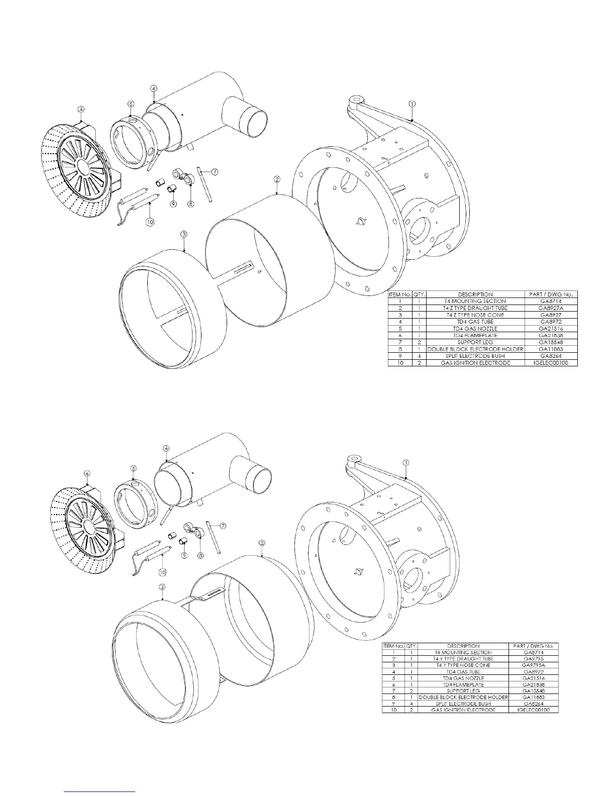 dunphy TD - TD410 Combustion Head Assembly; TD415-420 Combustion Head Assembly