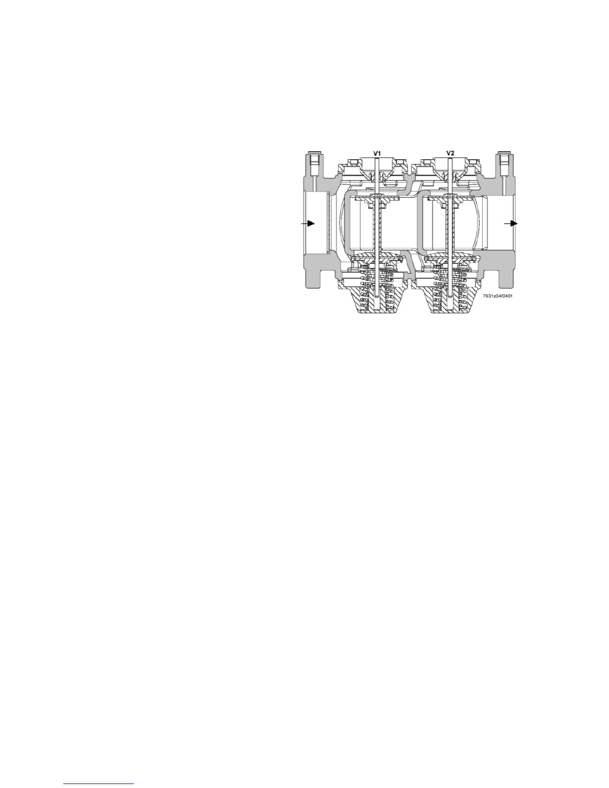 The double gas valves VGD40... are double seat disk valves of the normally closed type. The stems