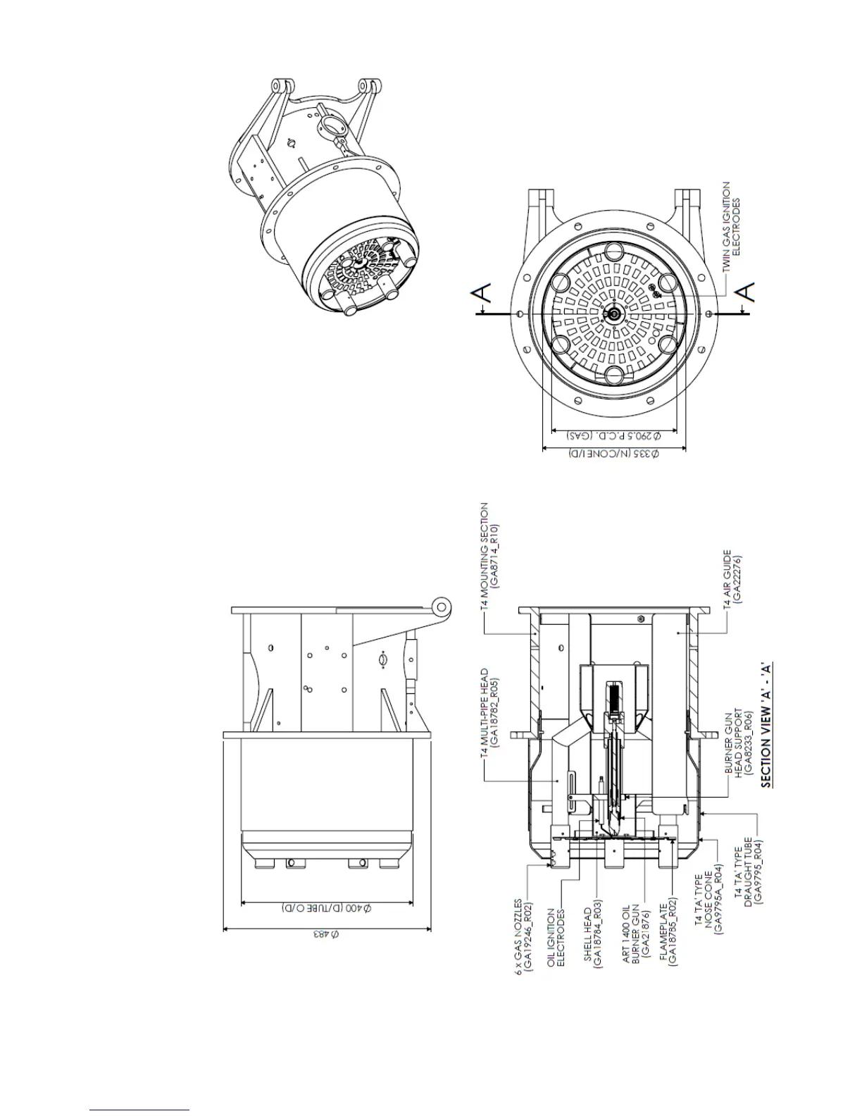 3.1 Modulating TD415-420 Burners Fitted With Low NOx Multi-Pipe Gas Head