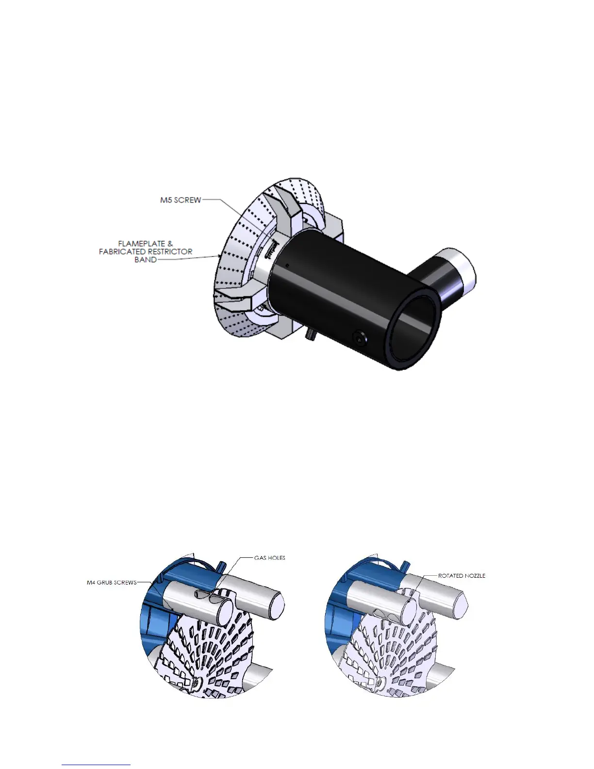 The Combustion head is attached to the gas inlet on the body. The gas flows through the gas annulus
