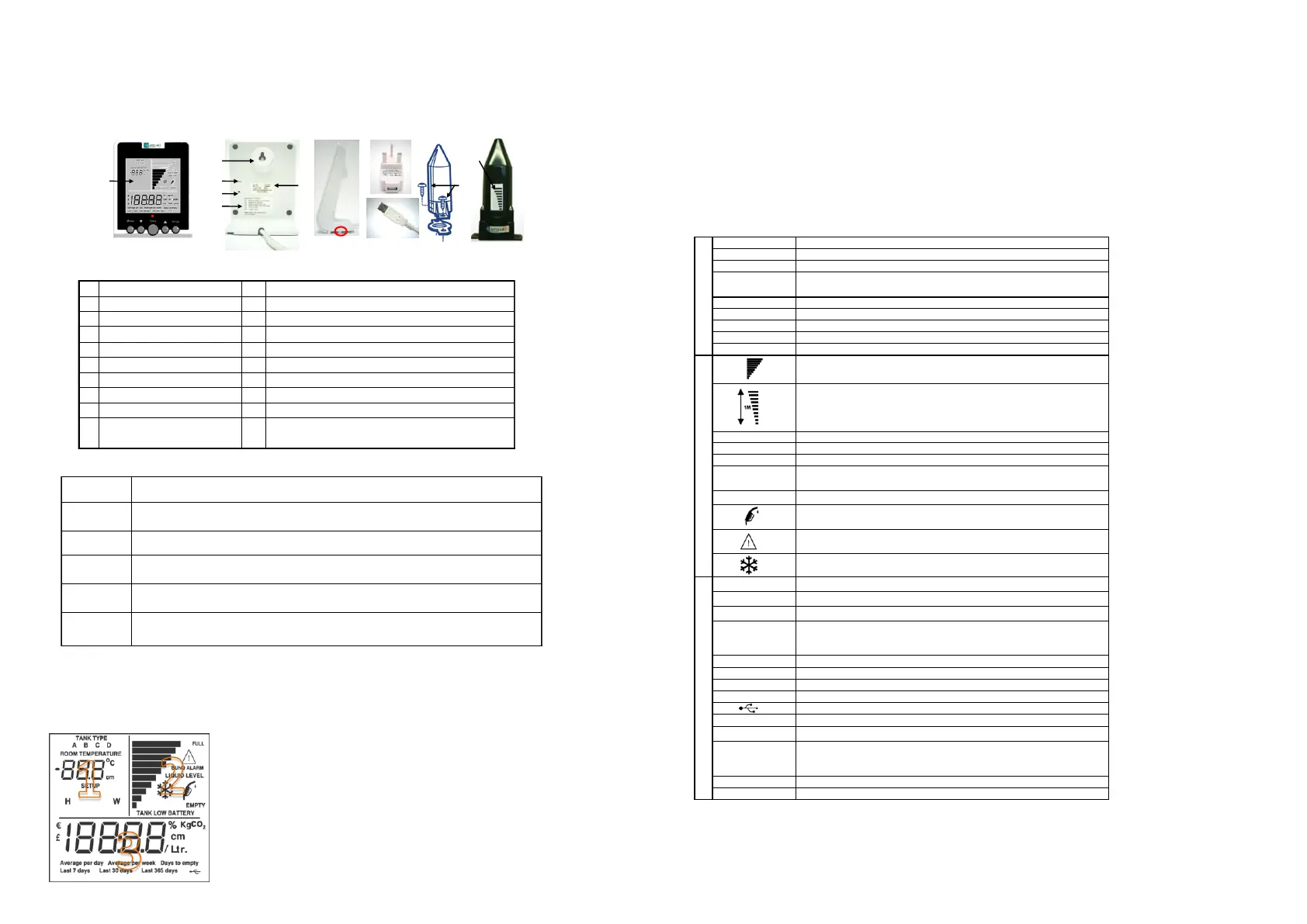 tank. The display contains three sections (1, 2, & 3) as indicated: