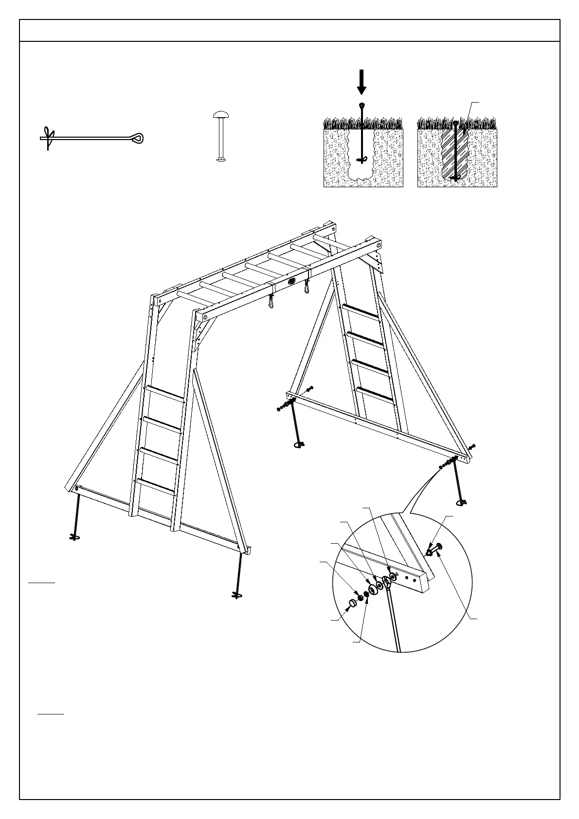 • When the anchors are firmly attached to the climbing frame, fill the holes with compacted soil. If you find that the